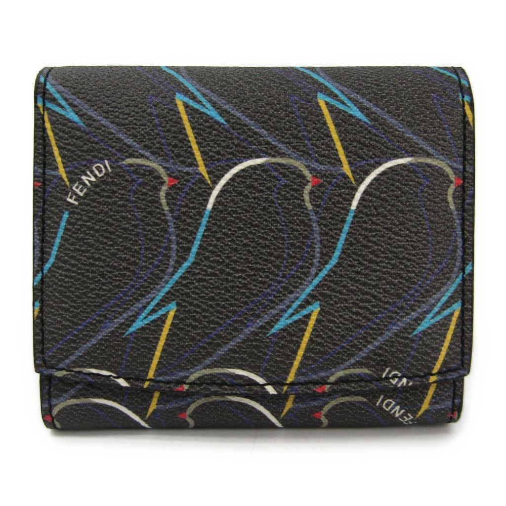 Fendi Dark Grey Coated Canvas Birds Compact Wallet (SHA-16419)