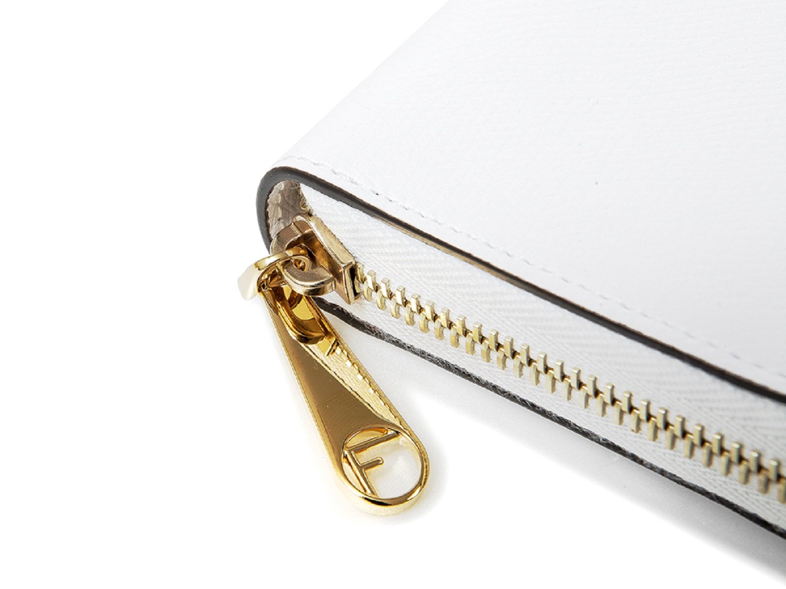 Fendi F Is Fendi White Calfskin Leather Zip Around Long Wallet 8M0299