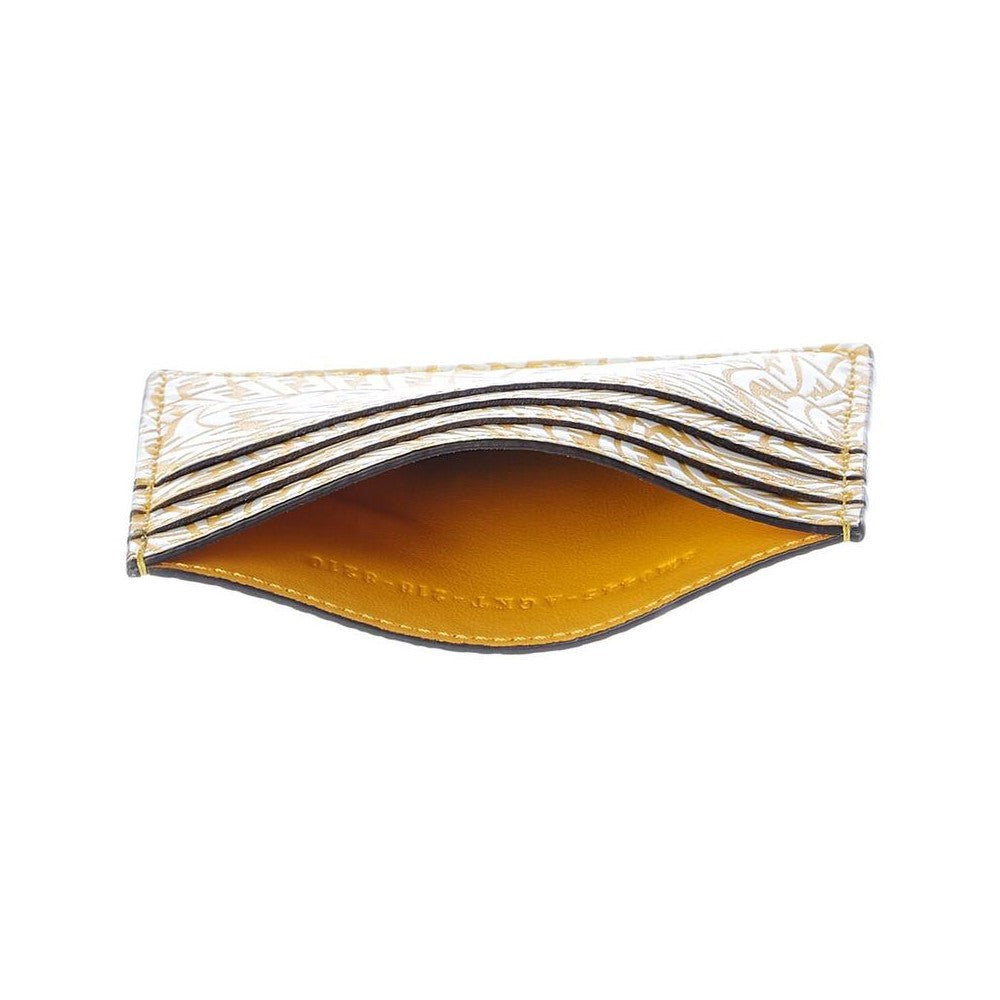 This card case wallet features the Vertigo FF Print on Mimosa yellow calfskin leather. The front face is embellished with a gold-tone F is Fendi logo. There are three card slots on each side of the card case separated by one bill slot in the center. Brighten up your day with this stylish and convenient card case by Fendi.