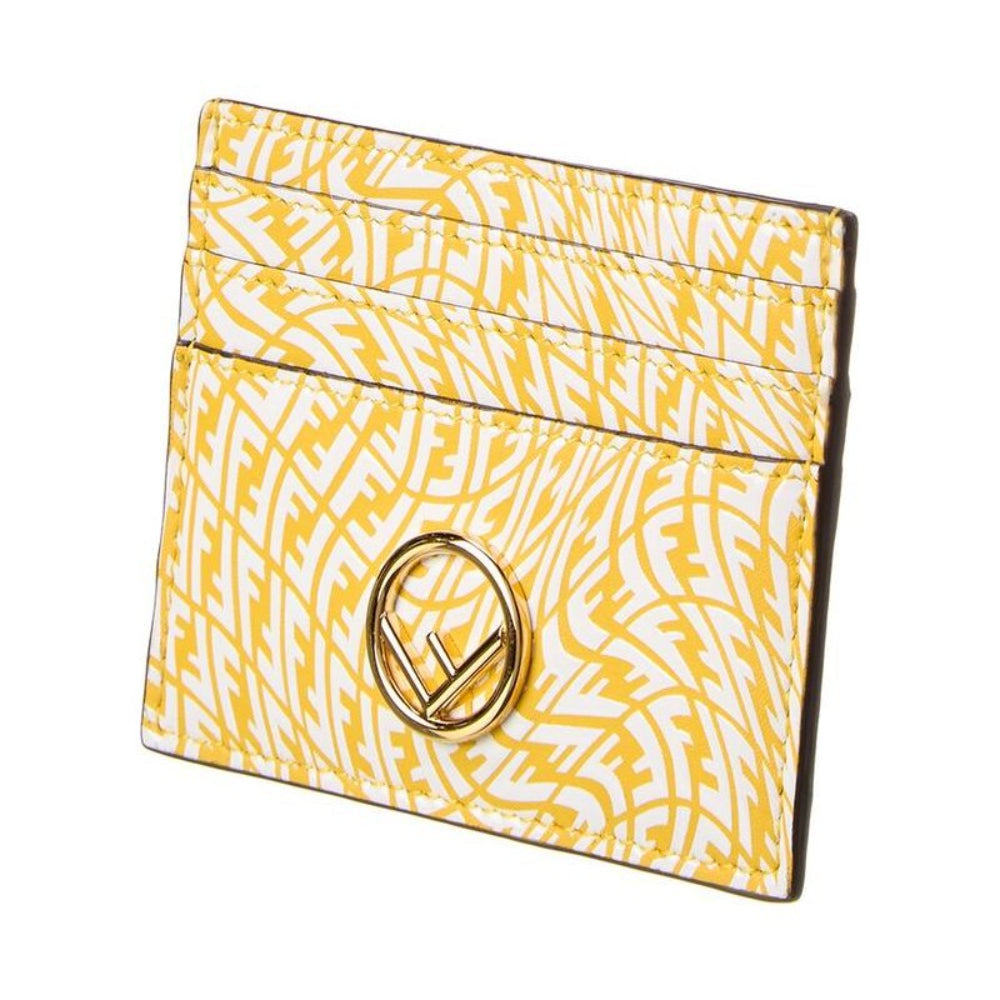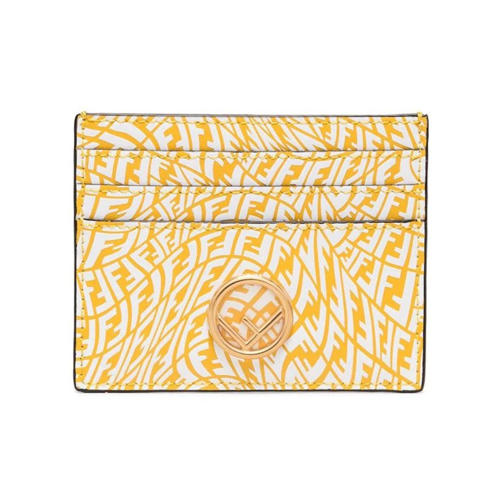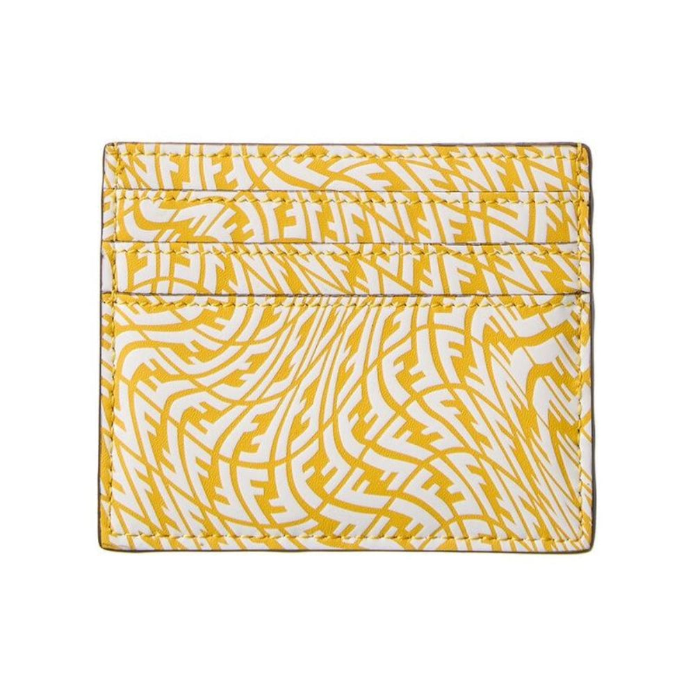 Fendi F is Fendi Yellow Leather Vertigo Print Card Case Wallet 8M0445