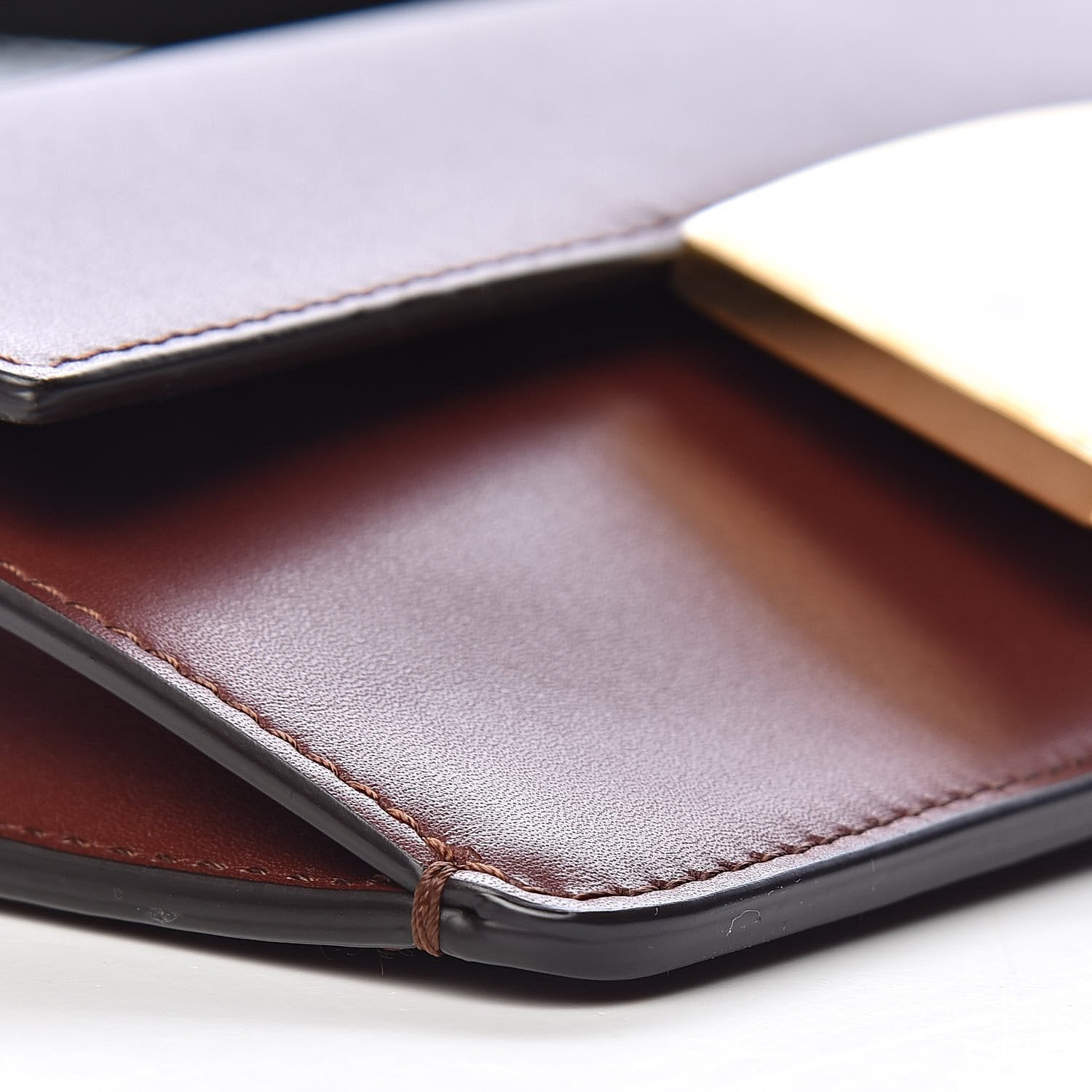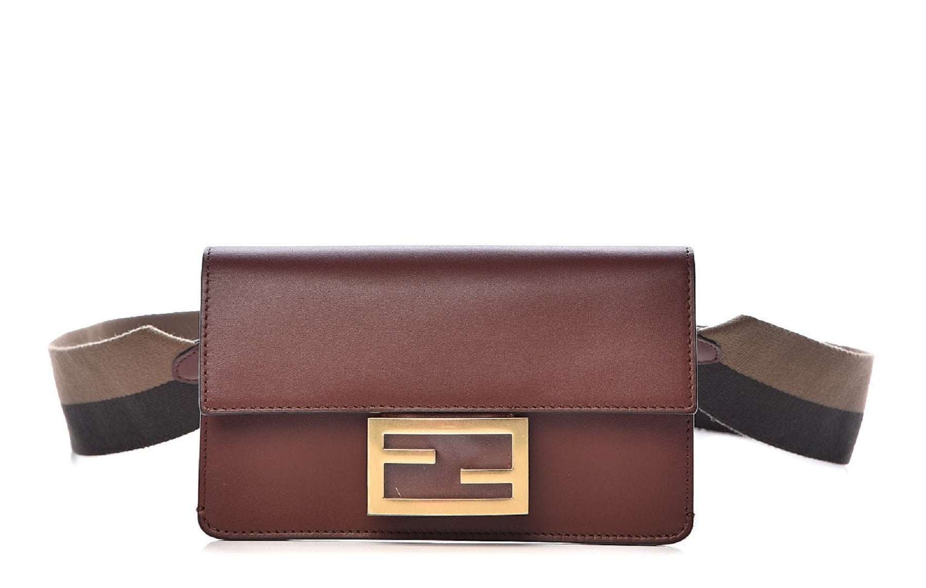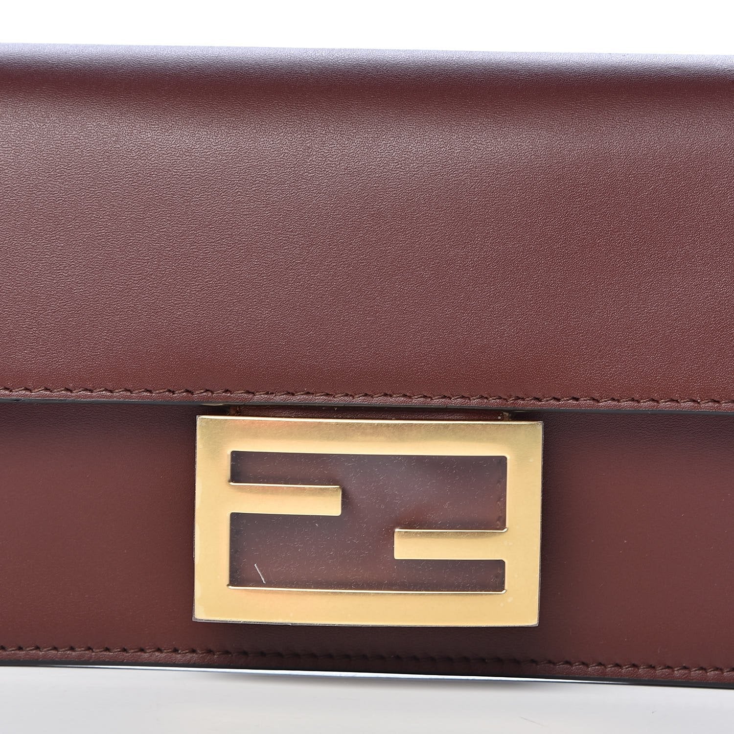 This beautiful shoulder bag is crafted of leather in brown. The bag features an antique gold Baguette logo on the front face. The magnetic snap closure opens to a brown suede lined interior with card slots. The detachable shoulder strap allows for this piece to be worn as a shoulder bag or clutch.
