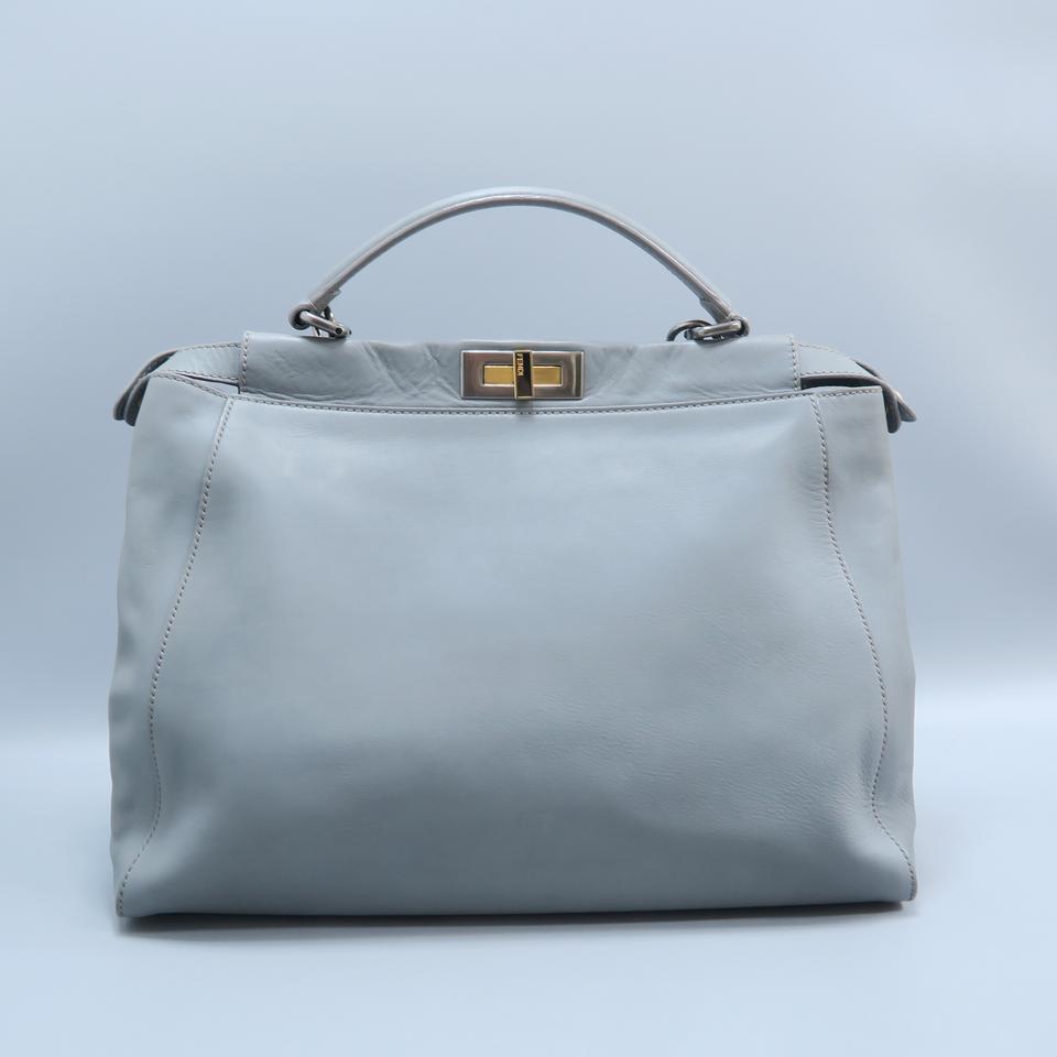 Fendi Peekaboo Large Dusty Blue Calfskin Leather Satchel