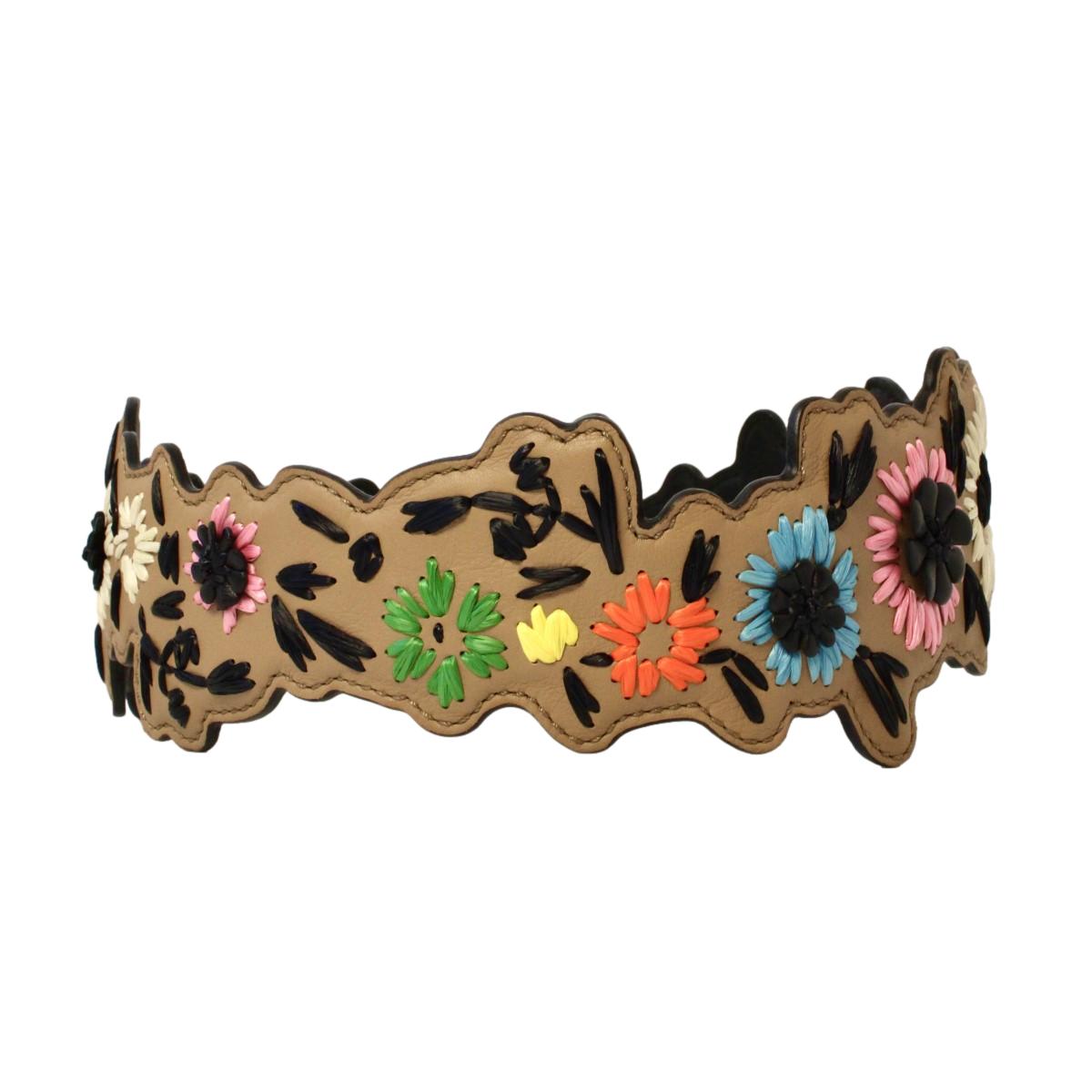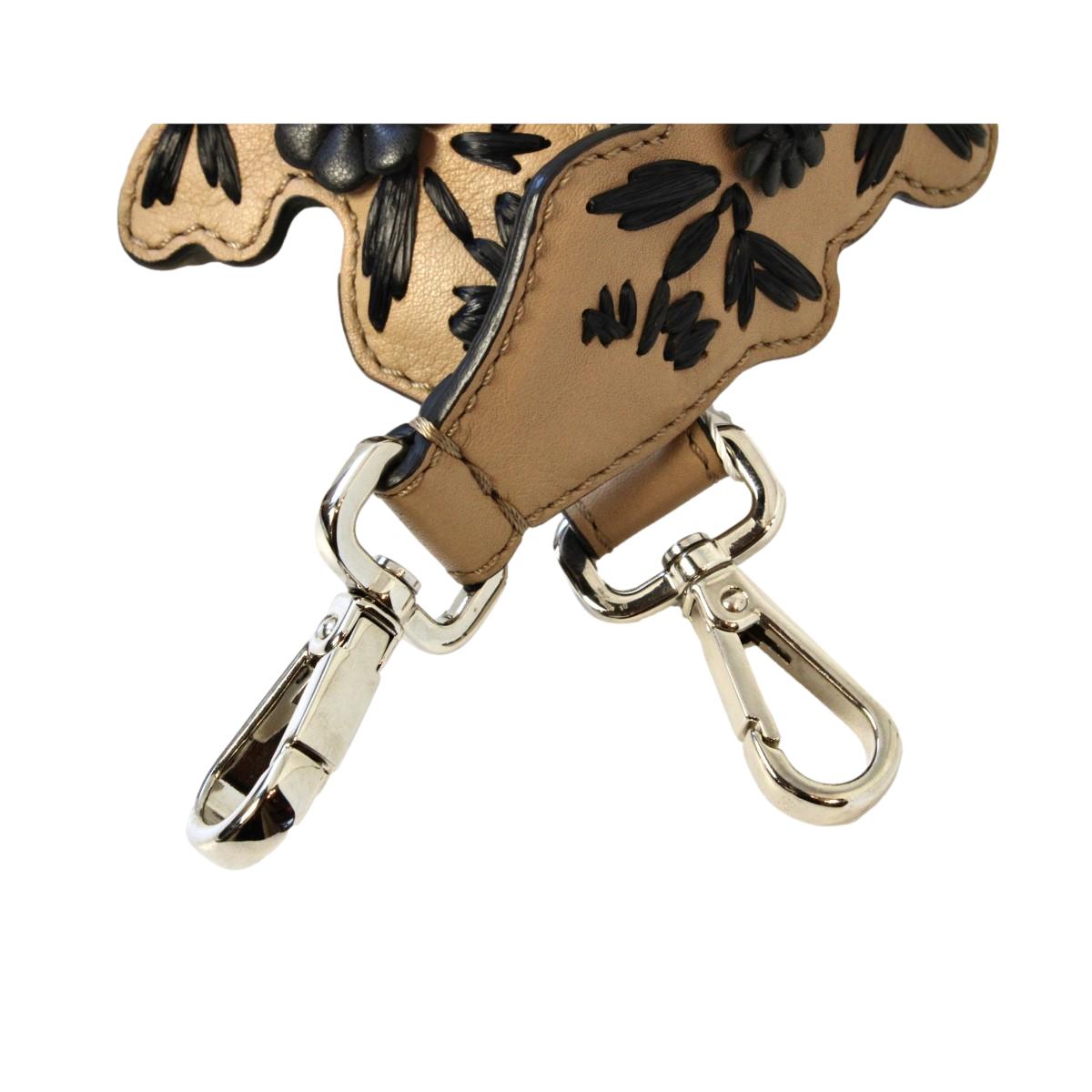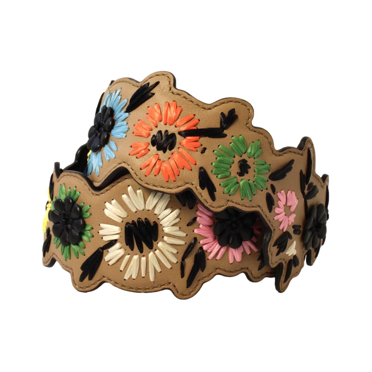 This Fendi flowered multicolored shoulder strap is so unique and cute. This multicolored leather strap is adorned with adorable flowers. This strap goes beautifully with a Fendi designer handbag and can be hooked on to other handbags as well. This Fendi shoulder strap will add a fun pop of color to your everyday wardrobe and will jazz up any handbag. Includes authenticity cards and Fendi dust-bag.