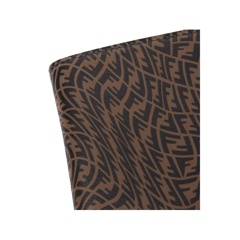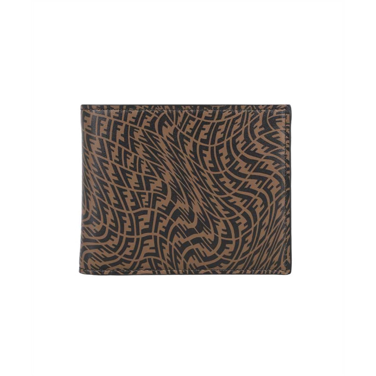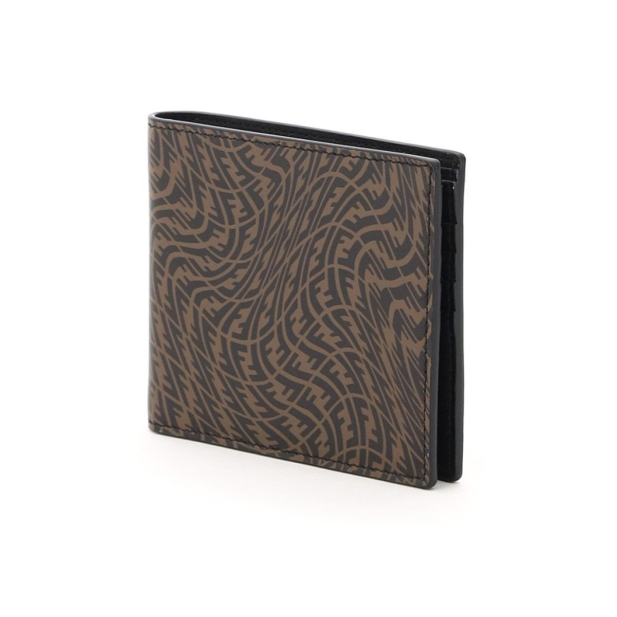 From the Fendi x Sarah Coleman collection, this leather bifold redesigns the classic FF zucca logo. In "Vertigo" pattern, this brown wallet has black FF logos across the front and back of this wallet. There are five card slots separated, one ID card window, and one long bill slot. This card case is so stylish and perfect for carrying your personal information and credit cards.