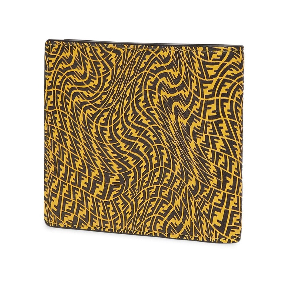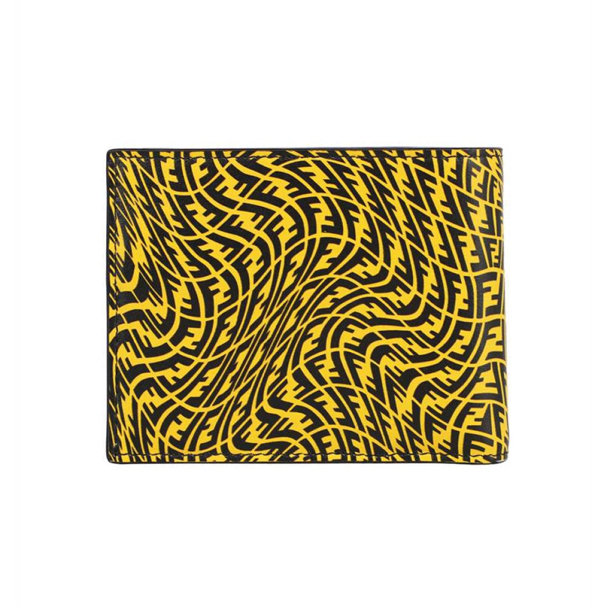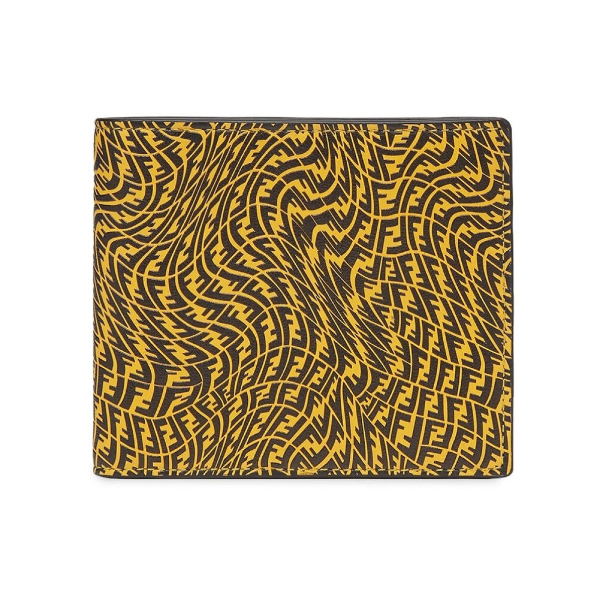 From the Fendi x Sarah Coleman collection, this leather bifold redesigns the classic FF logo. In "Vertigo" pattern, this yellow wallet has black FF logos across the front and back of this wallet. There are 7 card slots and 2 long bill slots. This card case is so stylish and perfect for carrying your personal information and credit cards.