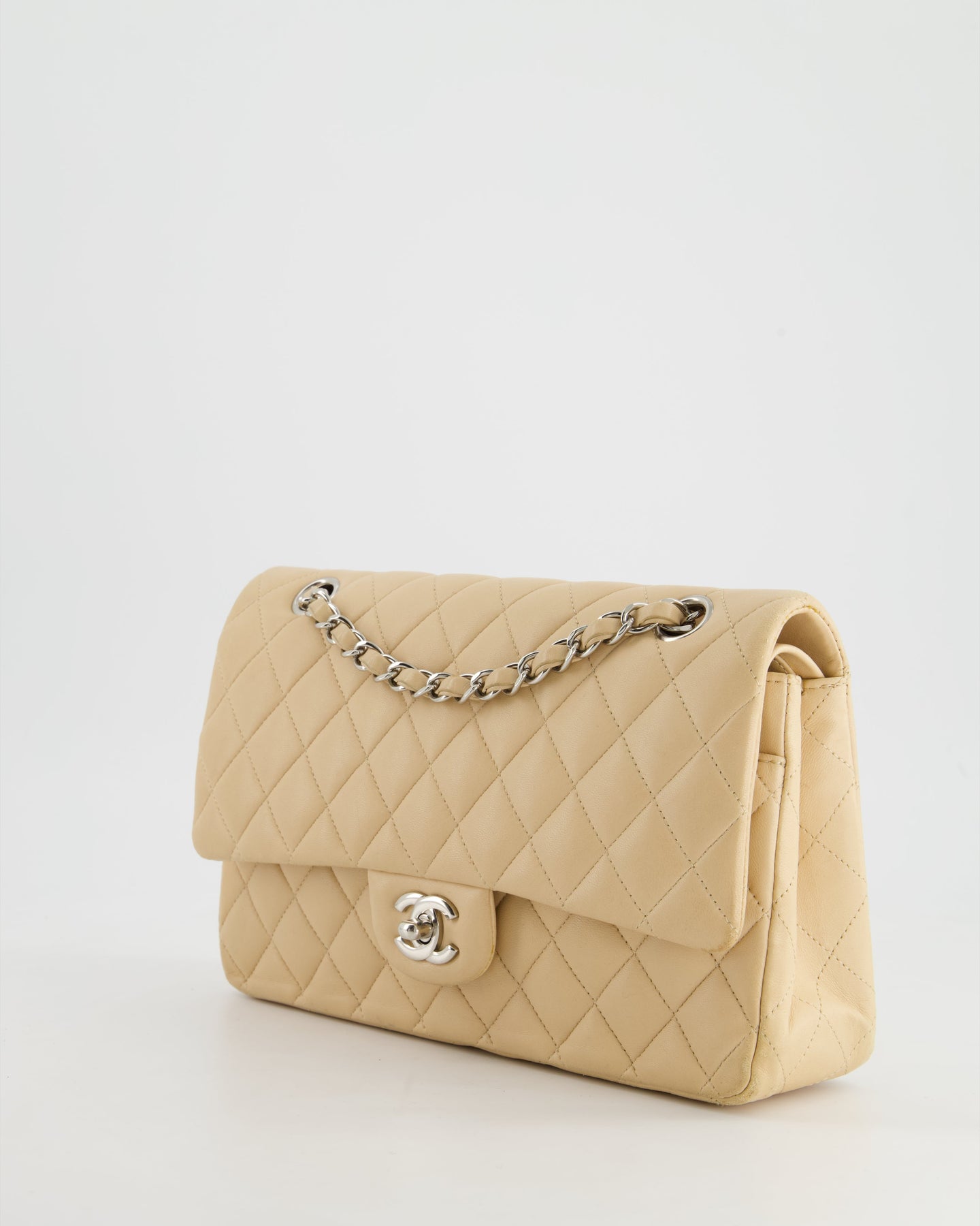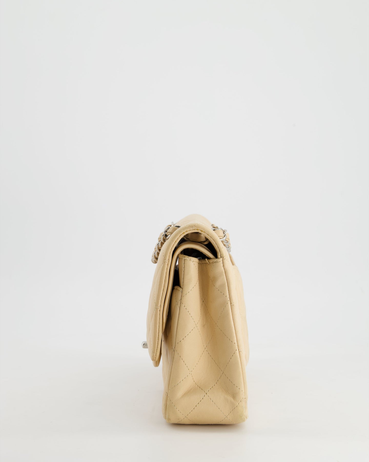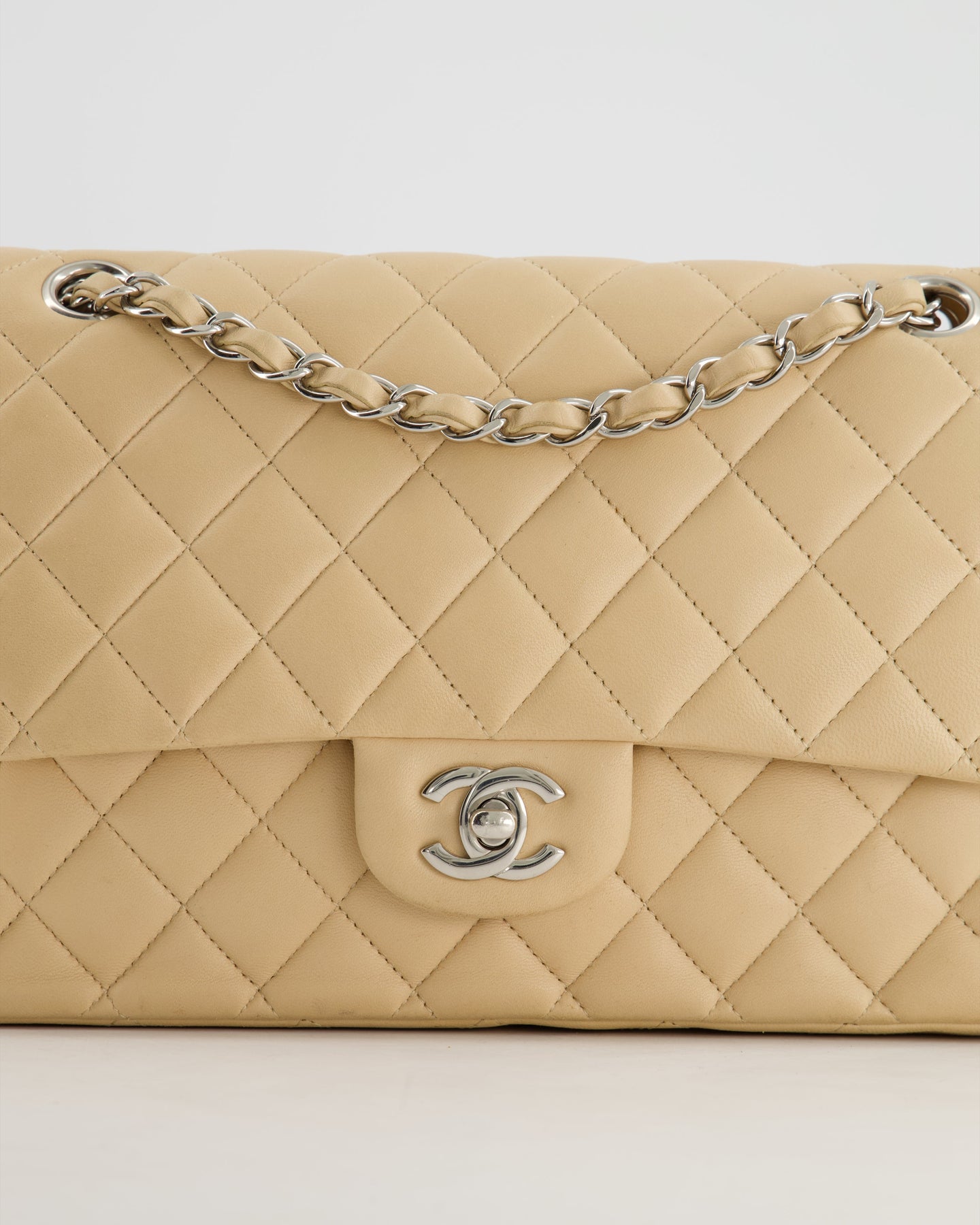 *FIRE PRICE* Chanel Beige Medium Double Flap Bag in Lambskin Leather with Silver Hardware