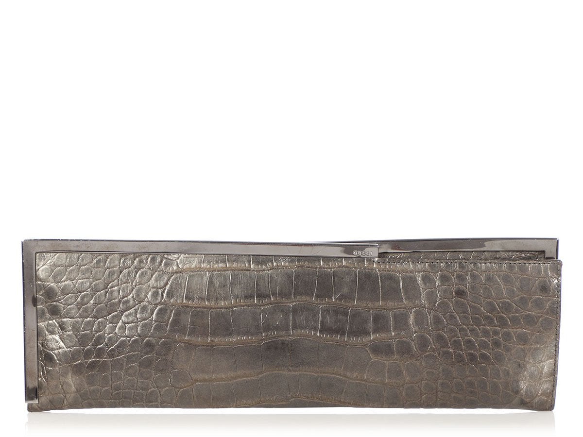 G*G Pewter Long Crocodile Embossed Frame Clutch