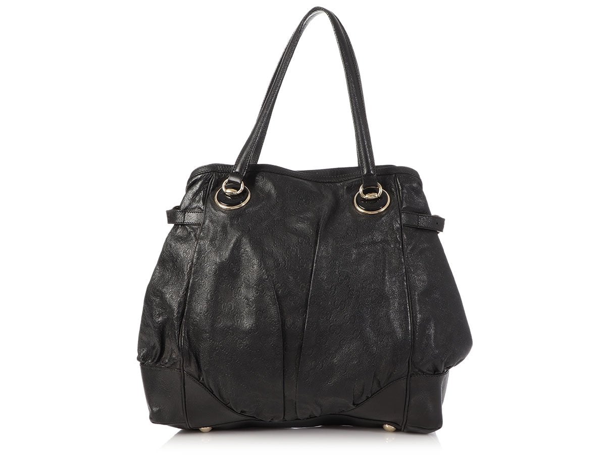 Super spacious, Gucci’s Black Guccissima Full Moon Tote is as big as the night sky! Well, maybe not quite, but it is perfectly roomy, made of thick, textured logo-embossed leather with gold hardware and feet. The dual handles have a drop of 8 inches and round plastic details at the bases, while the belted top secures with a magnetic snap and opens to reveal a black-fabric-lined interior with one zipped and two slide pockets. In good condition, it has wear on the corners, hardware, handle glazing, and inside, two breaks in the leather on the front, some scratches on the leather that blend well due to the texture, and a musty smell. Although it has seen some love, the beauty of this Gucci will never wane!