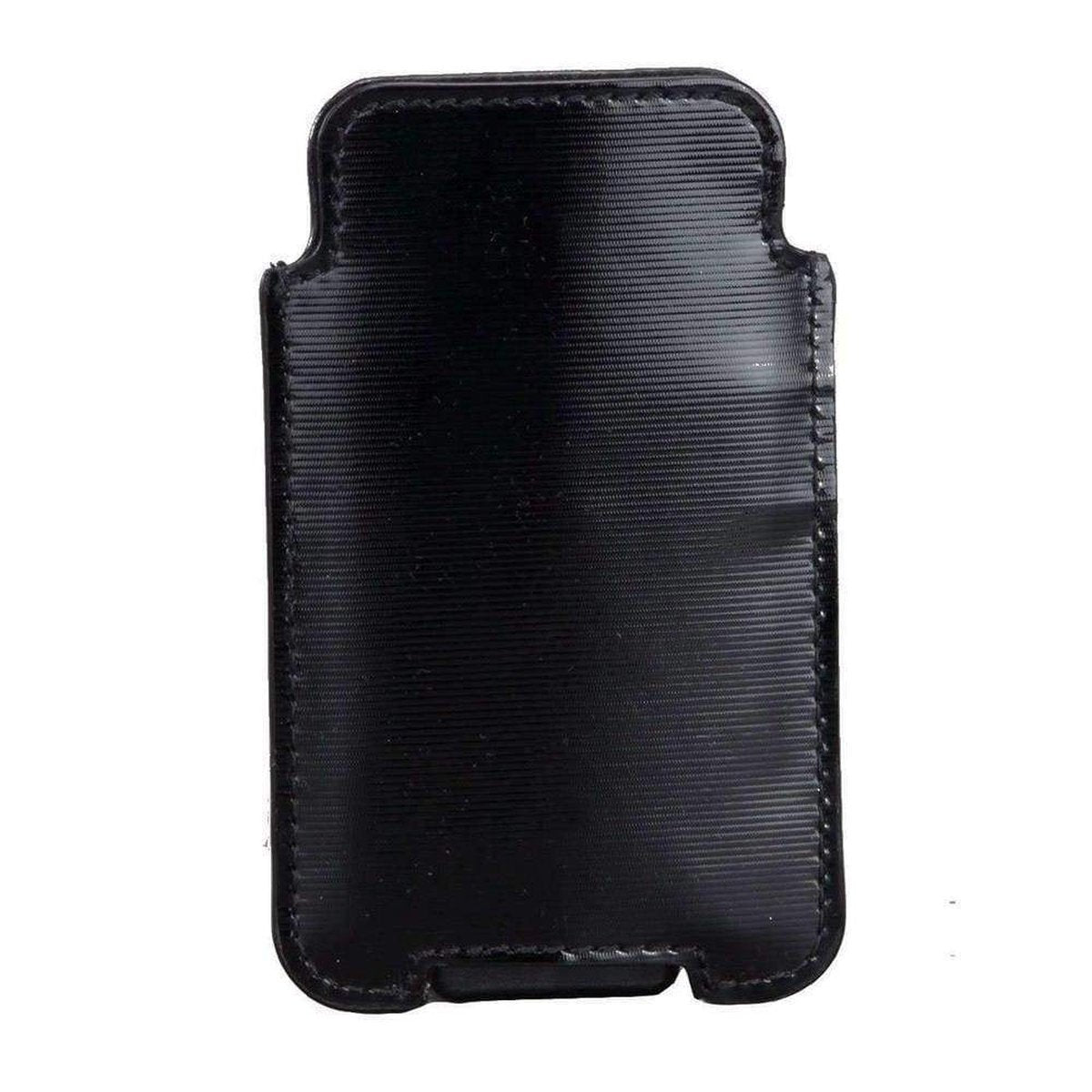 Black textured leather iPhone case from Givenchy featuring an open top, a cut-out window to the front and an embossed signature logo