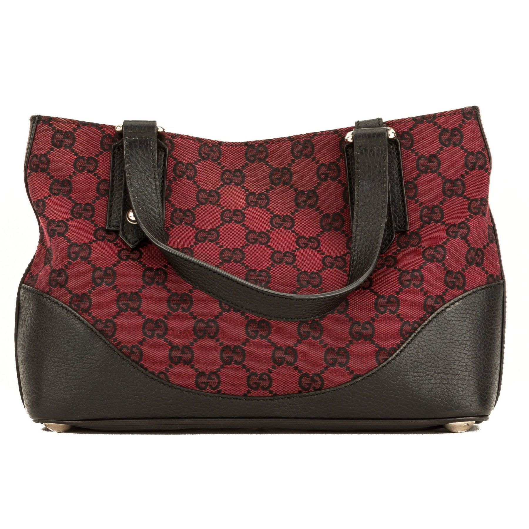 This authentic, pre-owned GUCCI Burgundy Shopping tote is stunning! It features Gucci signature monogram canvas with black leather trimmings for the handle straps and the corners, and silver tone hardware. The interior has a black textile lining, zip pocket, and a snap magnetic closure. It is an amazing everyday bag because of its versatility, stylish for any occasion. Made in Italy.
