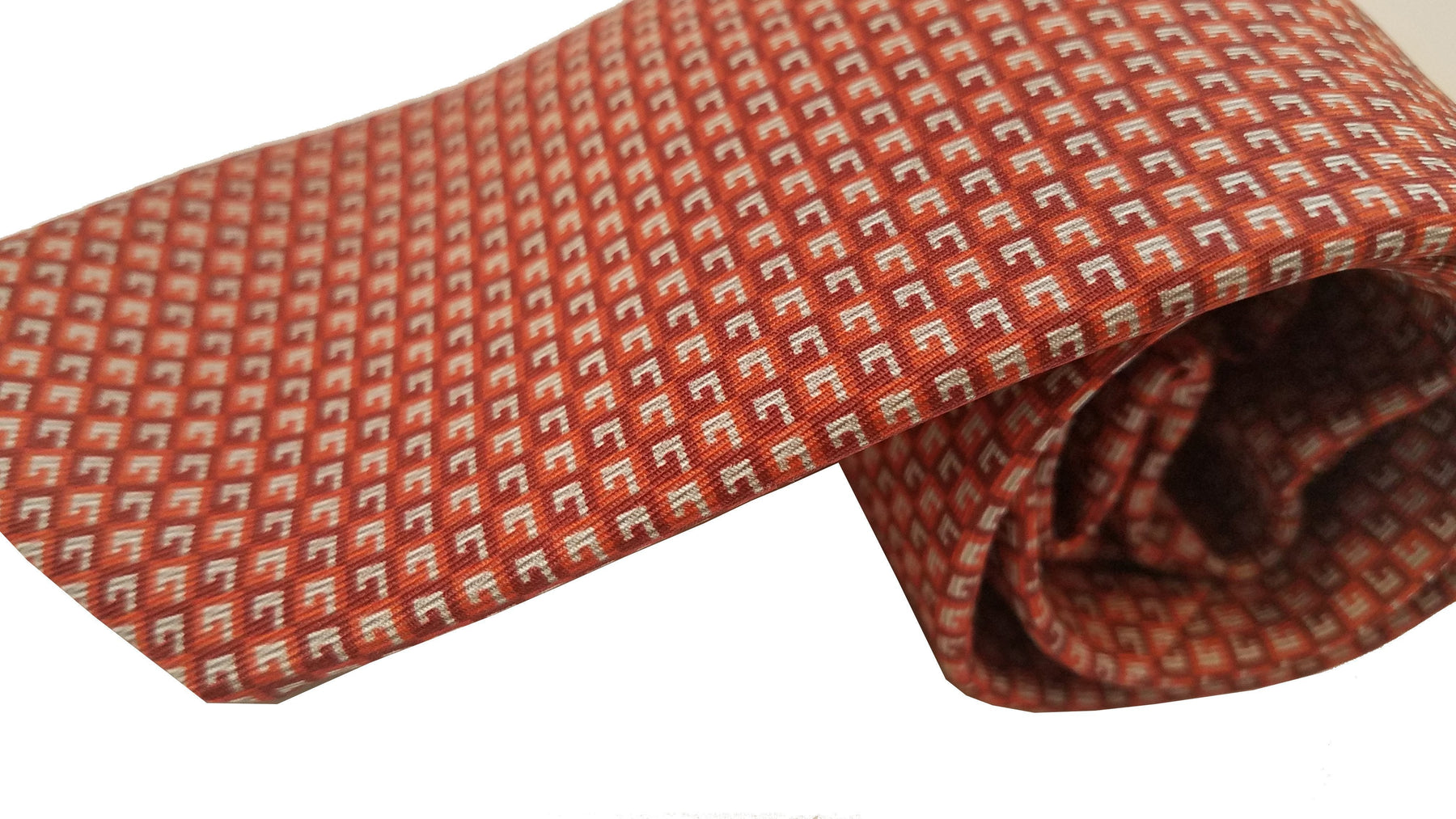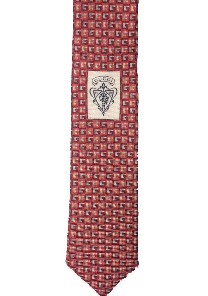 Gucci Men's Geometric Red Orange Silk Necktie 349407