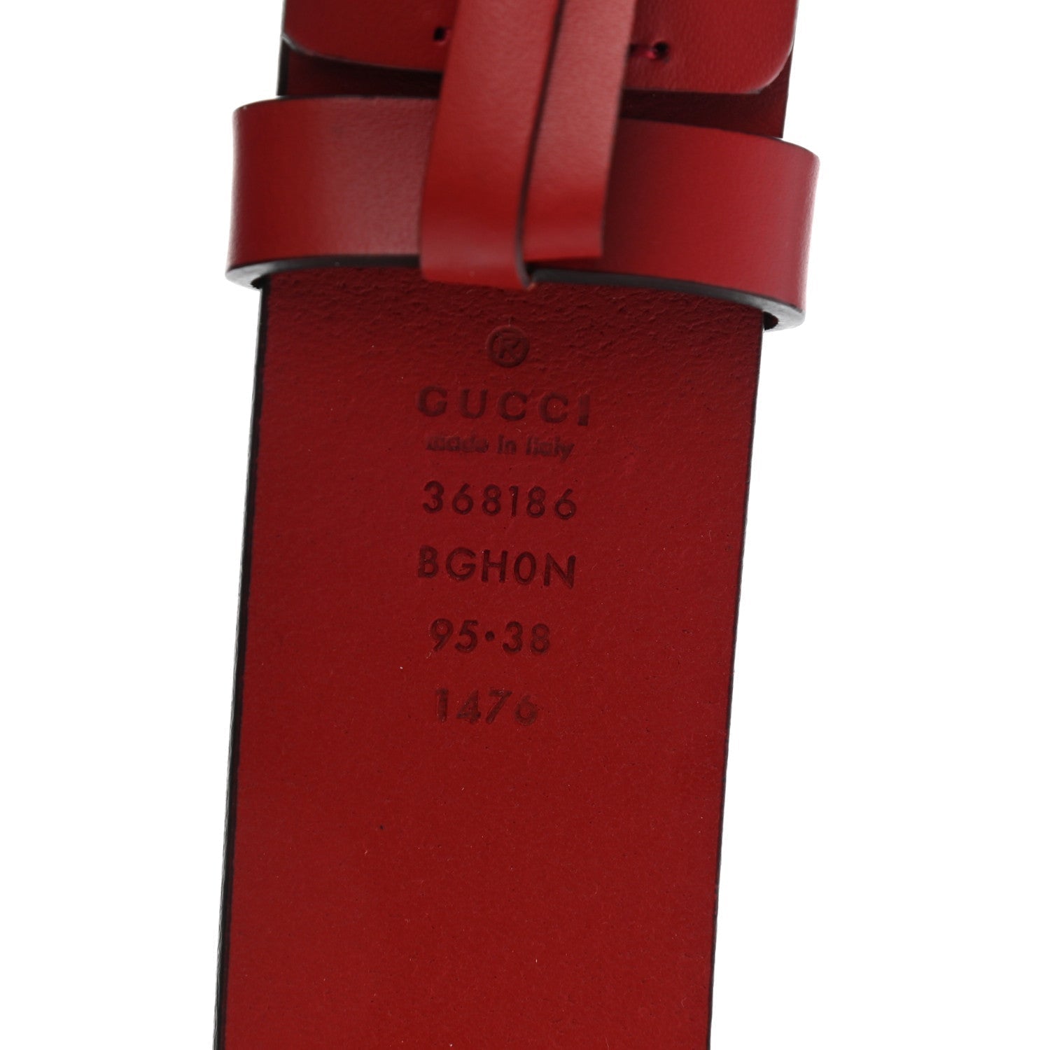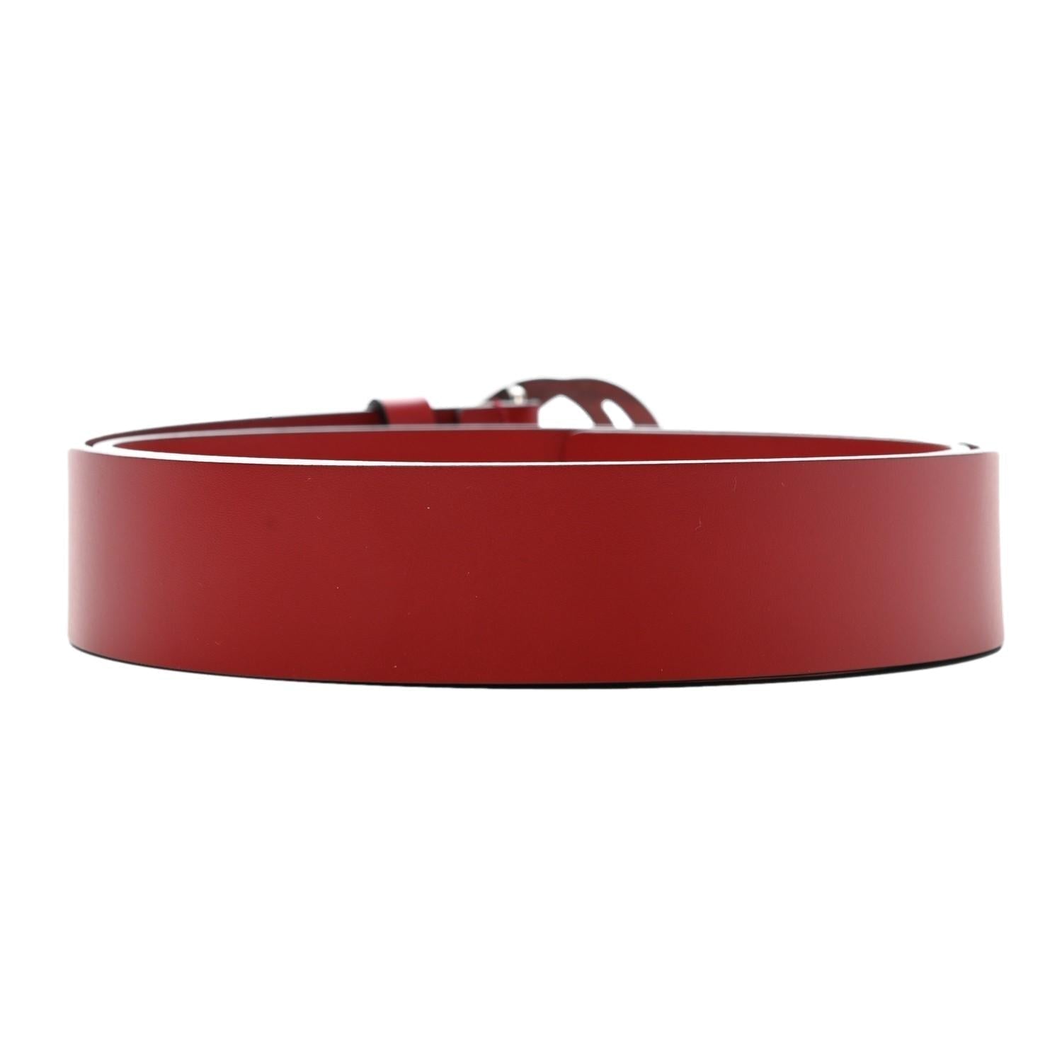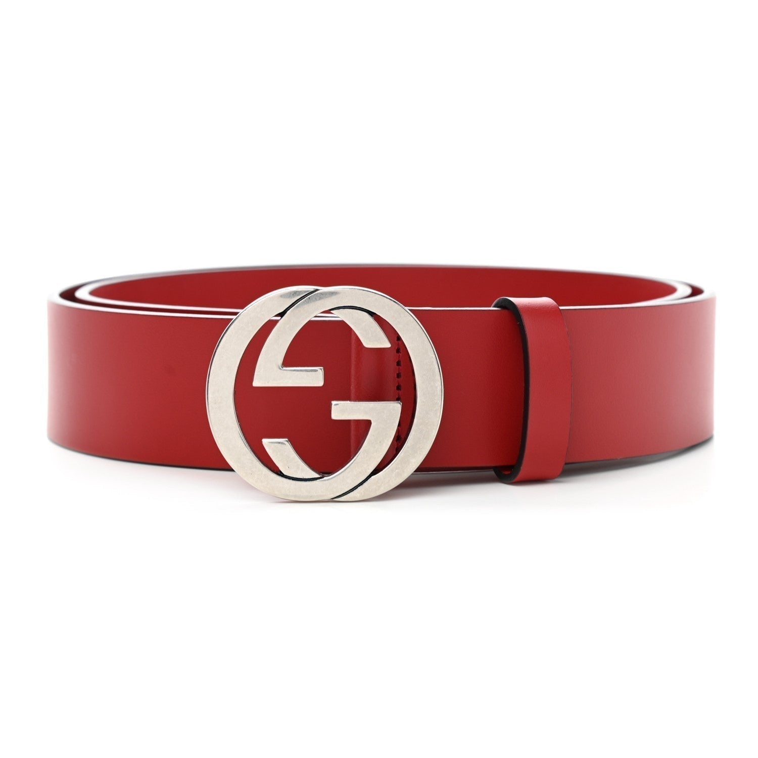 This Gucci belt is crafted of sleek Rosso red calfskin leather with an interlocking GG aged silver-toned buckle. This classic Gucci belt is a true staple piece for your wardrobe.
