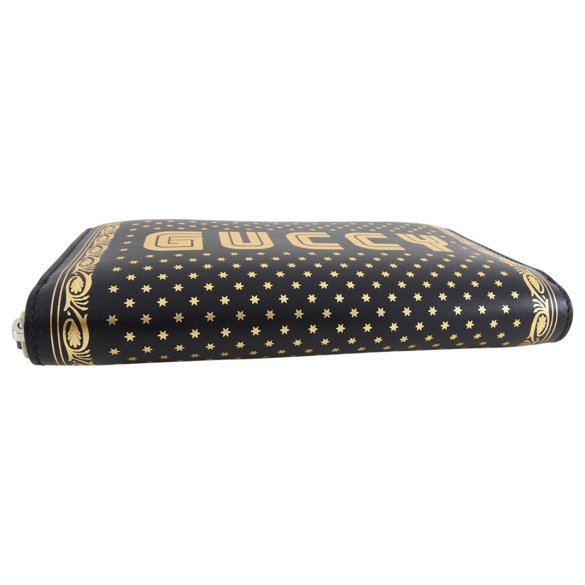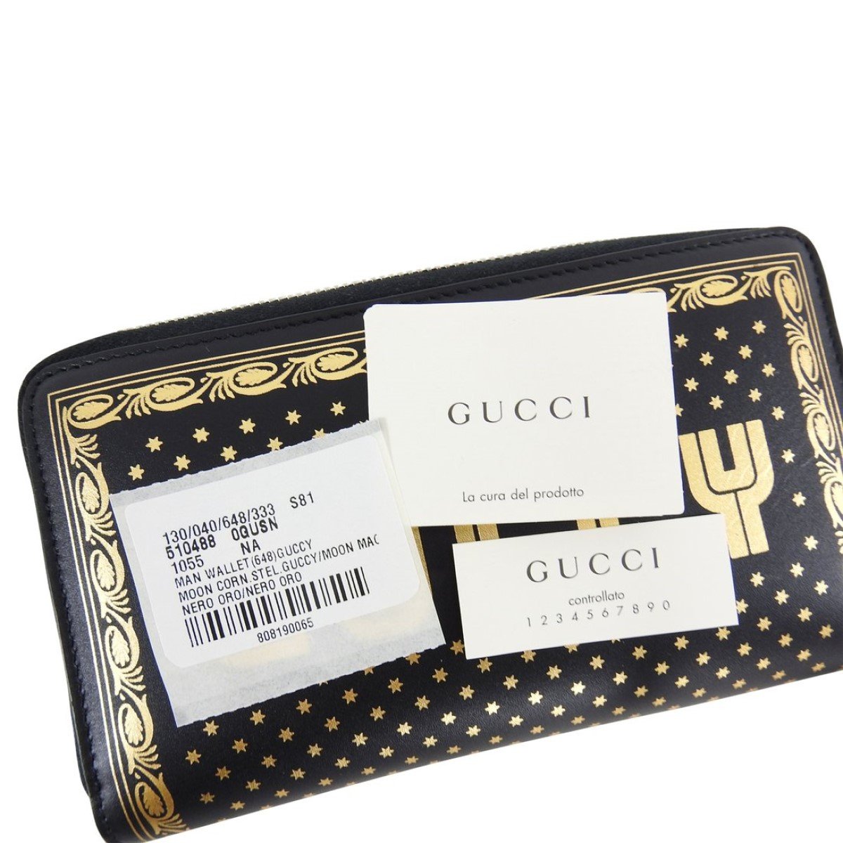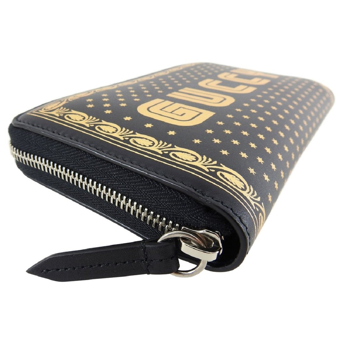 Gucci "Guccy" Black Leather Zip Around Wallet with Gold Stars 510488