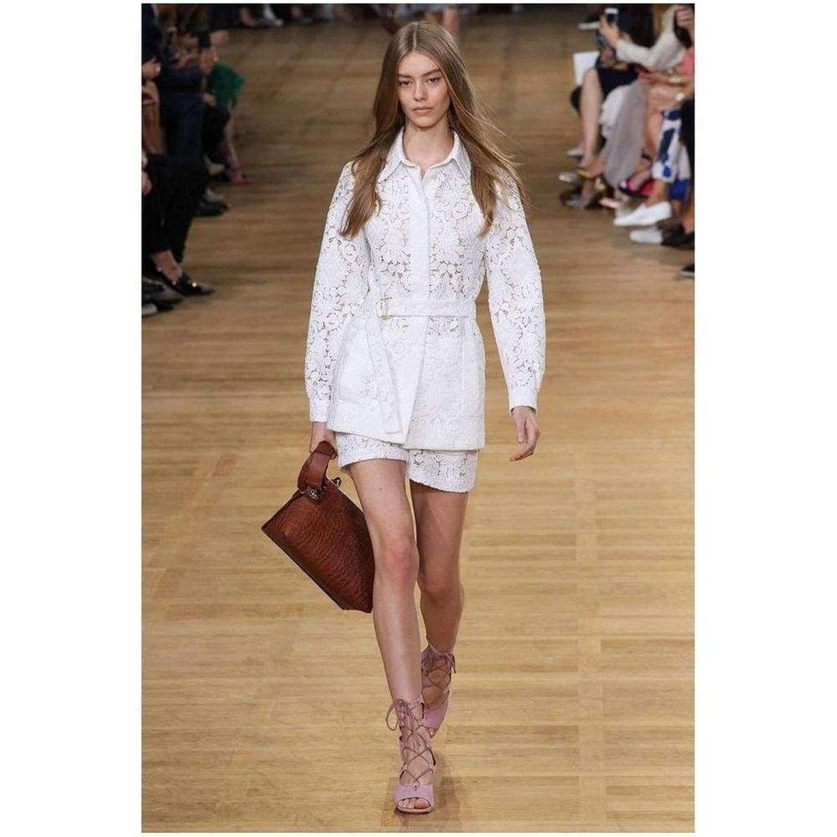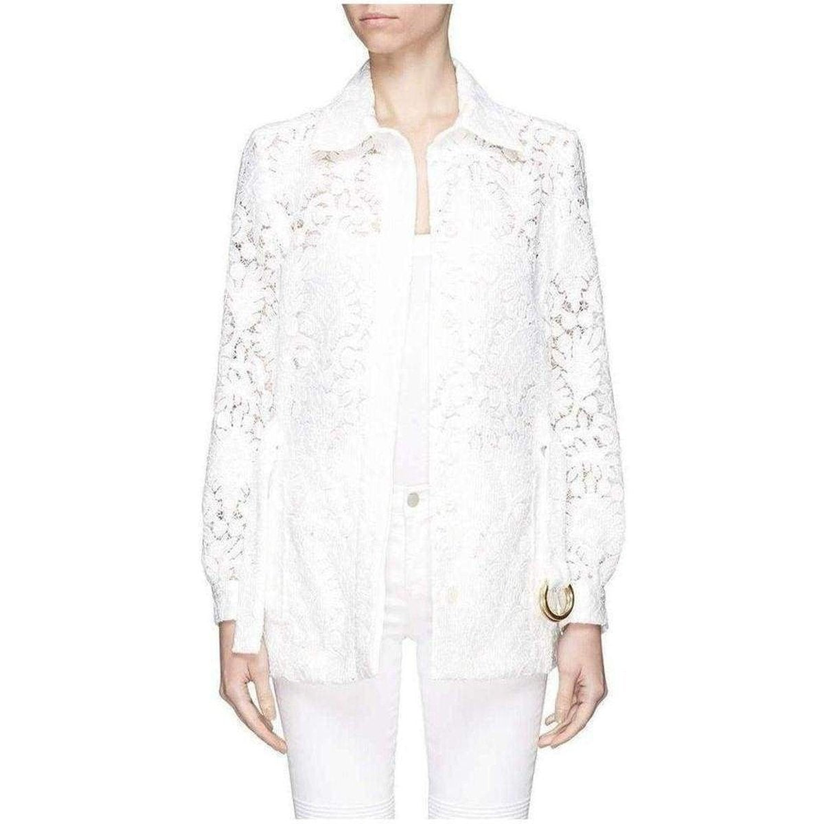 Concocted from guipure lace to infuse ethereal elegance, this piece is cut in a shirt silhouette for a collected look. Offering a hint of lustrous glamour, this one has two gold-tone loops to keep polished attitude intact.