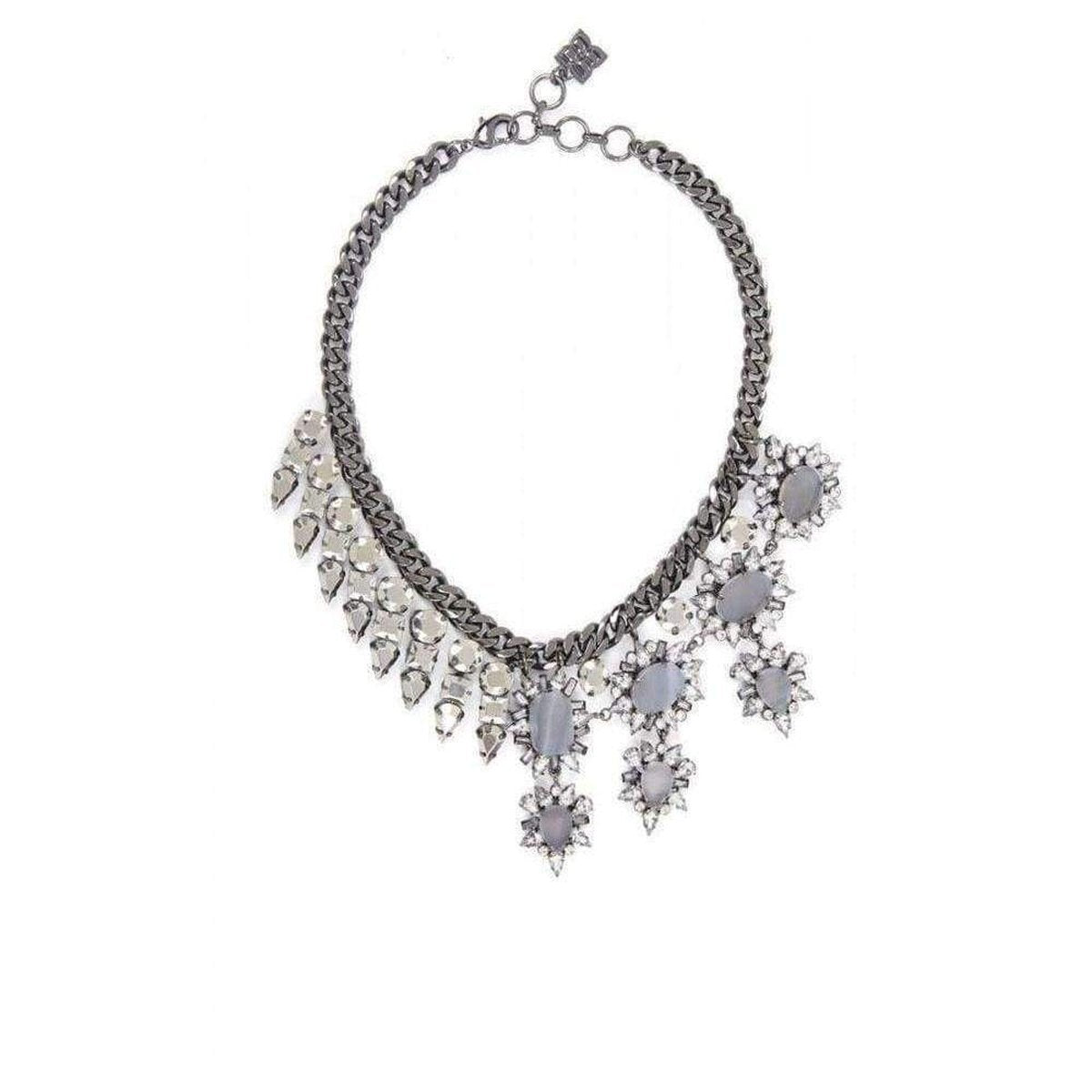 Combination prong-set faceted stone spikes and gemstones at centre.