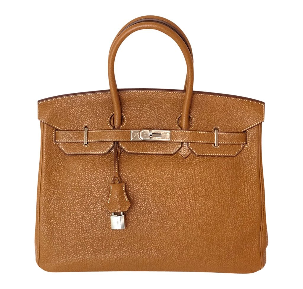 This Hermès Birkin 35cm bag is a wonderful addition to anyone's collection. Crafted from the popular soft pebbled finish Togo leather, this bag boasts a Gold color - one of the classics in the Hermès color collection. Completed with contrasting Palladium hardware, this bag comes with all original accessories.