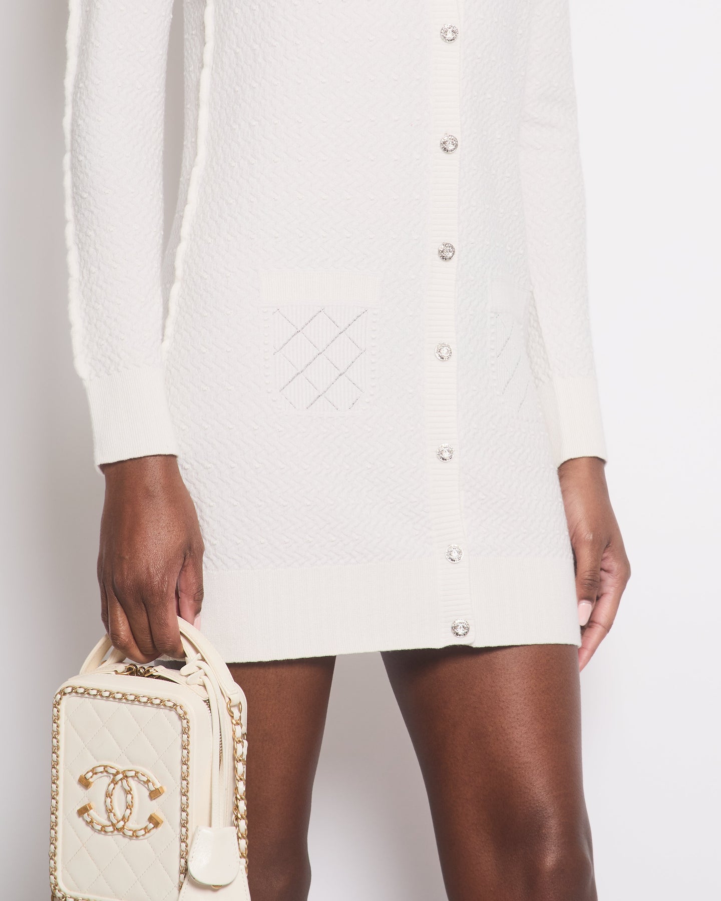 *HOT* Chanel 22A Ivory Long-Line Cashmere igan with Crystal CC Buttons Detail Size FR 38 (UK 10)