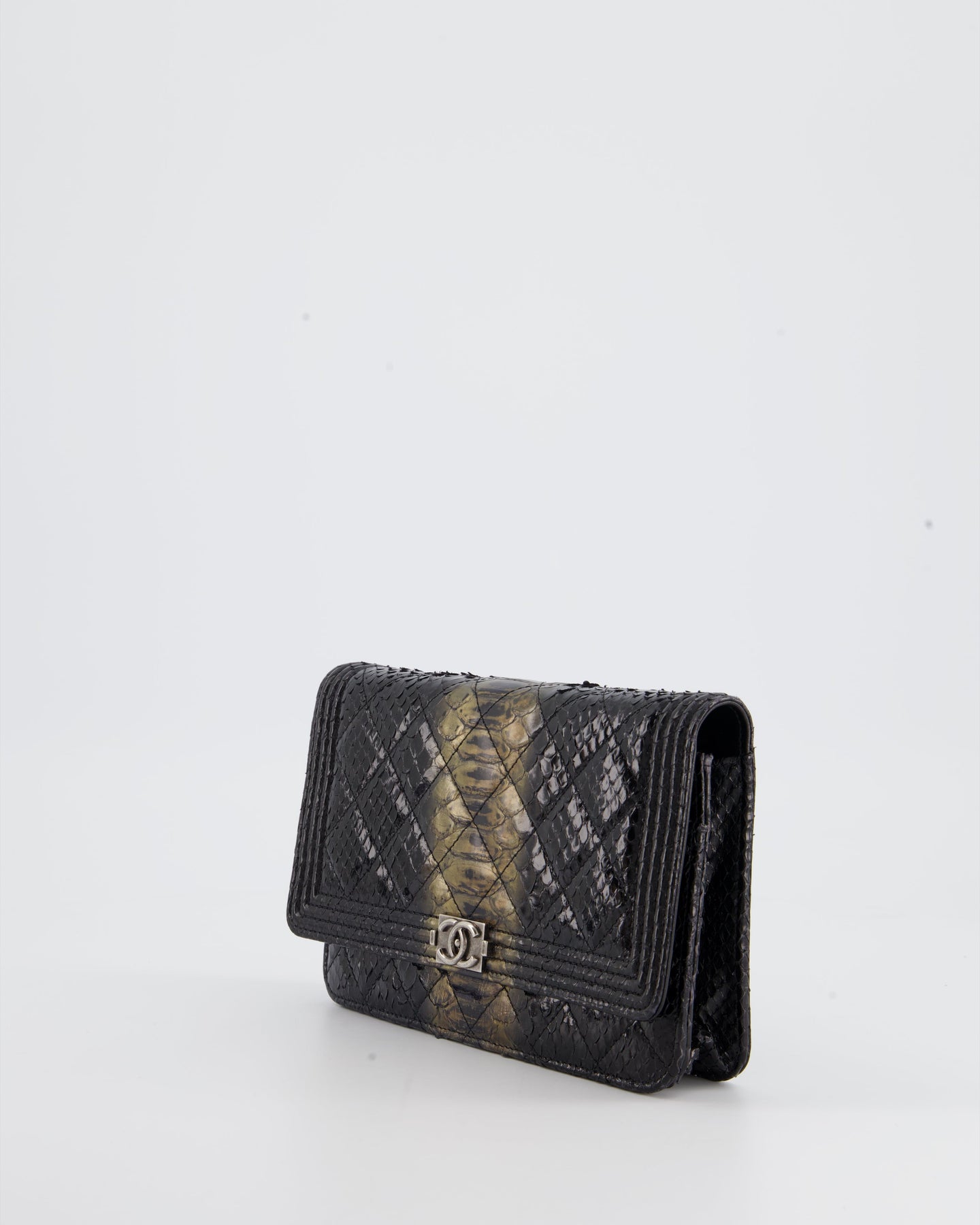 *HOT* Chanel Black and Gold Wallet on Chain Bag in Python with Ruthenium Hardware