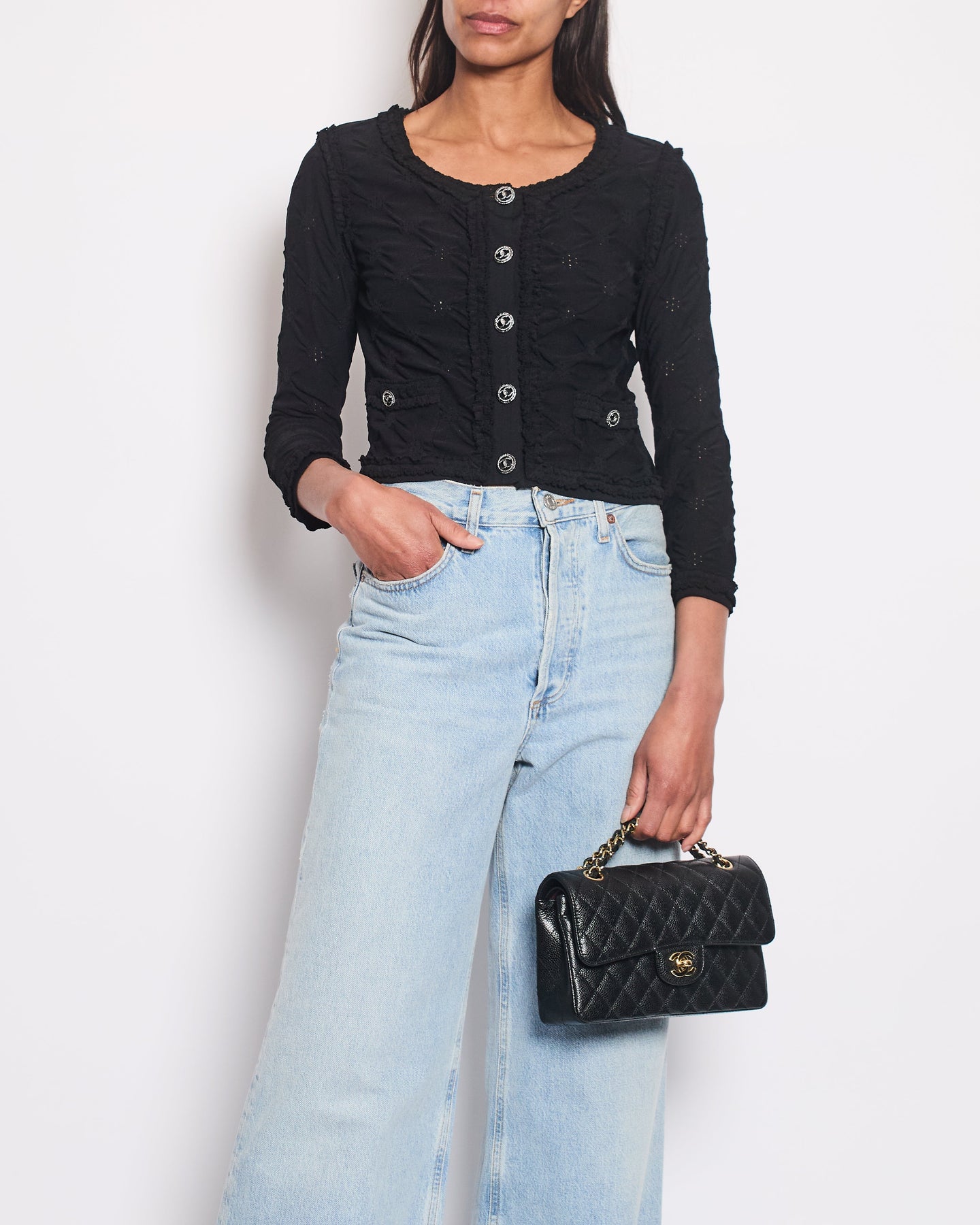 *HOT* Chanel Black Stretch-Jersey igan with Ruthenium CC Buttons Detail Size FR 36 (UK 8)