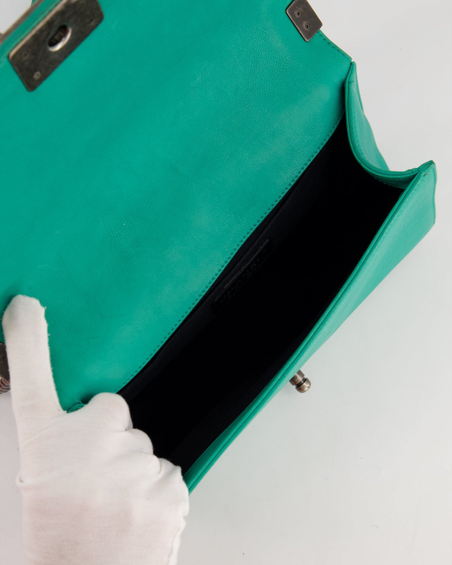 *HOT* Chanel Mint Green Medium Boy Bag in Calfskin Leather with Ruthenium Hardware