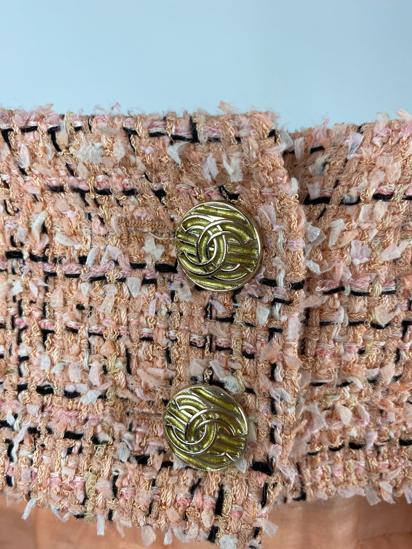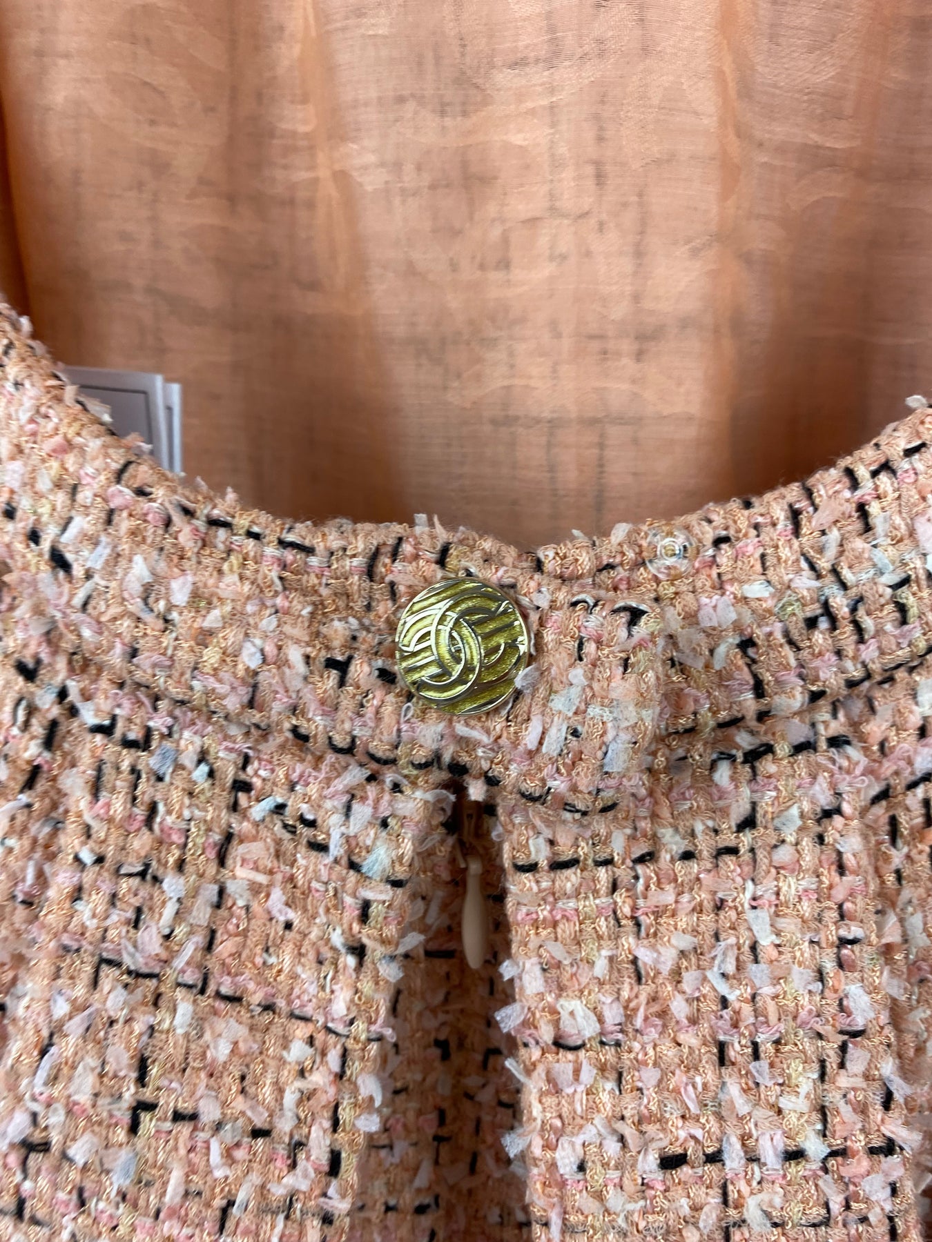 *HOT* Chanel Peach Tweed Belted Mini Dress with CC Buttons FR 34 (UK 4- 6)
