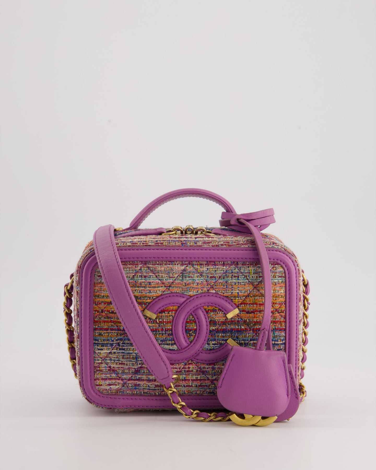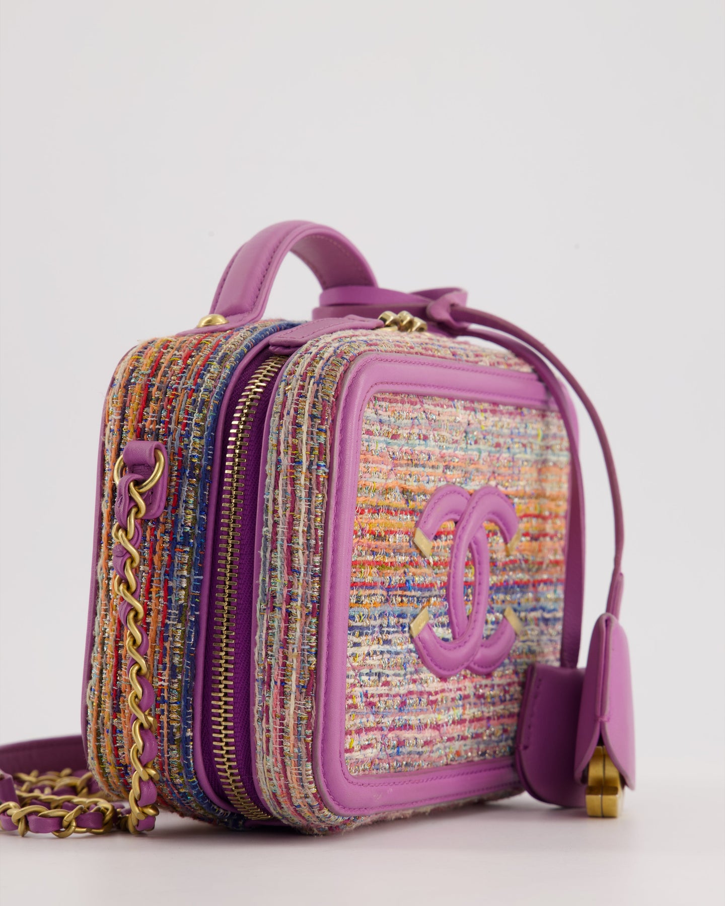 *HOT* Chanel Purple & Multicolour Tweed Small CC Vanity Case Bag in Lambskin Leather with Brushed Gold Hardware