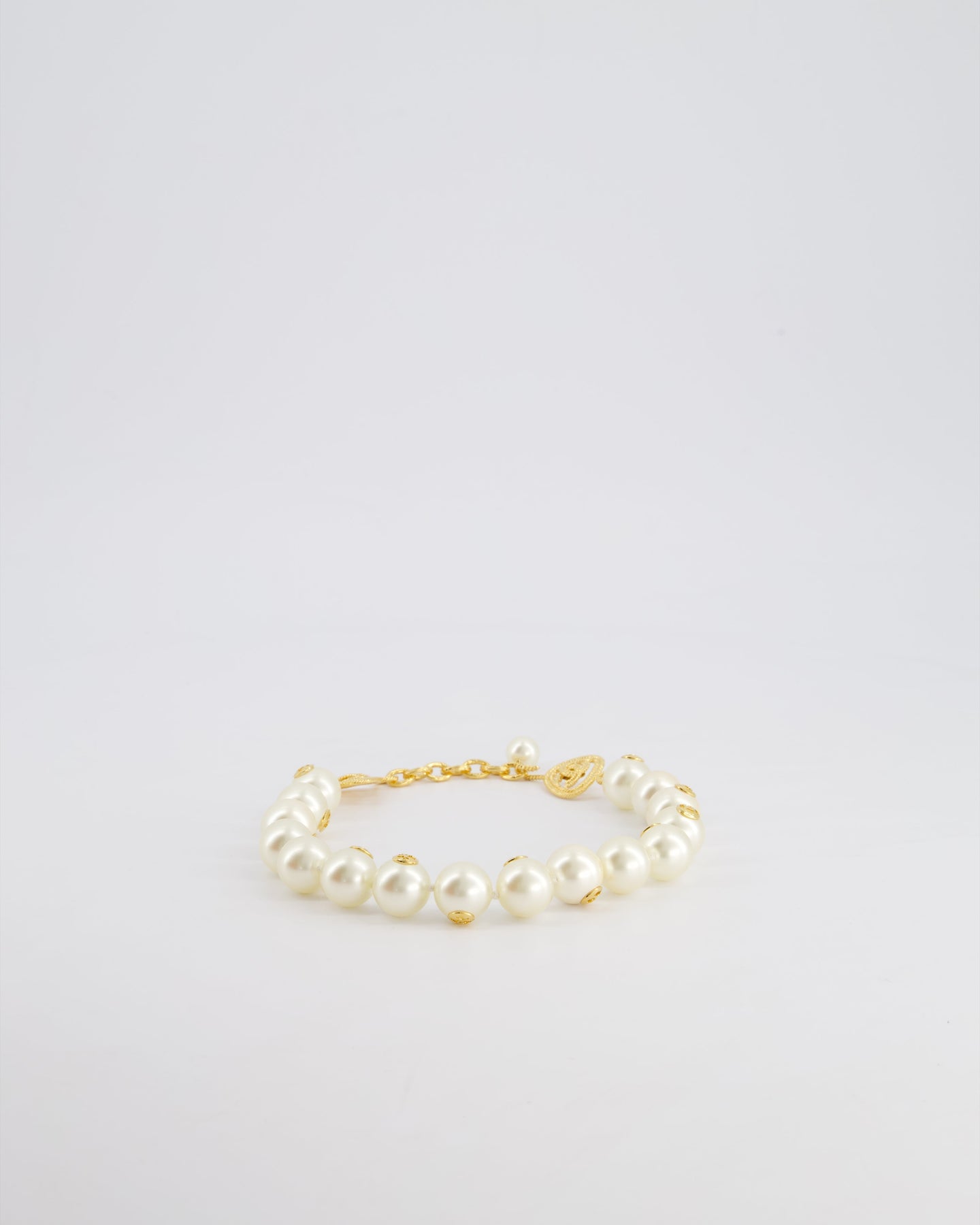 *HOT* Chanel White Pearl Chocker Necklace with Yellow Gold Logo Details