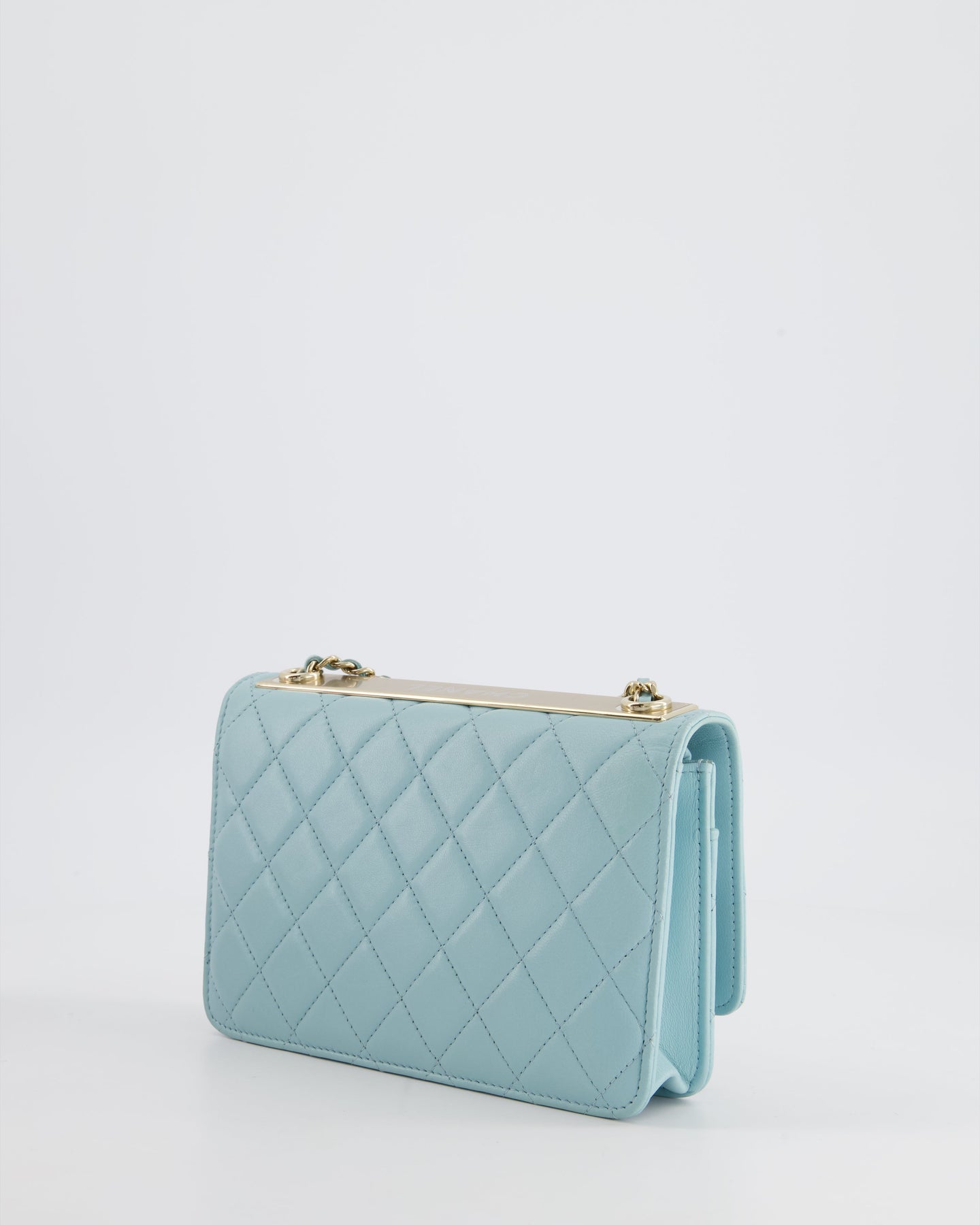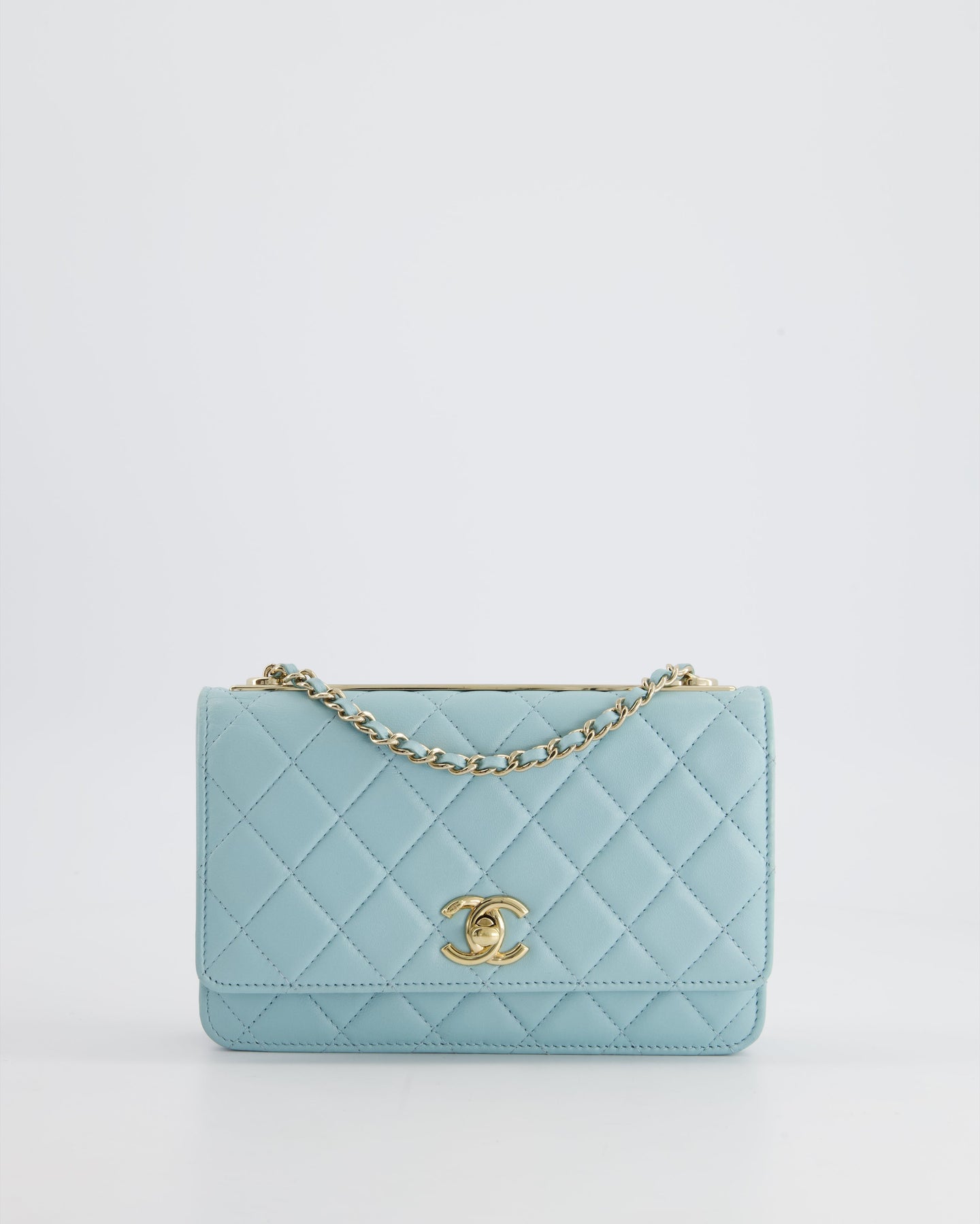 *HOT COLOUR* Chanel Baby Blue Quilted Trendy Wallet on Chain Bag in Lambskin Leather with Champagne Gold Hardware