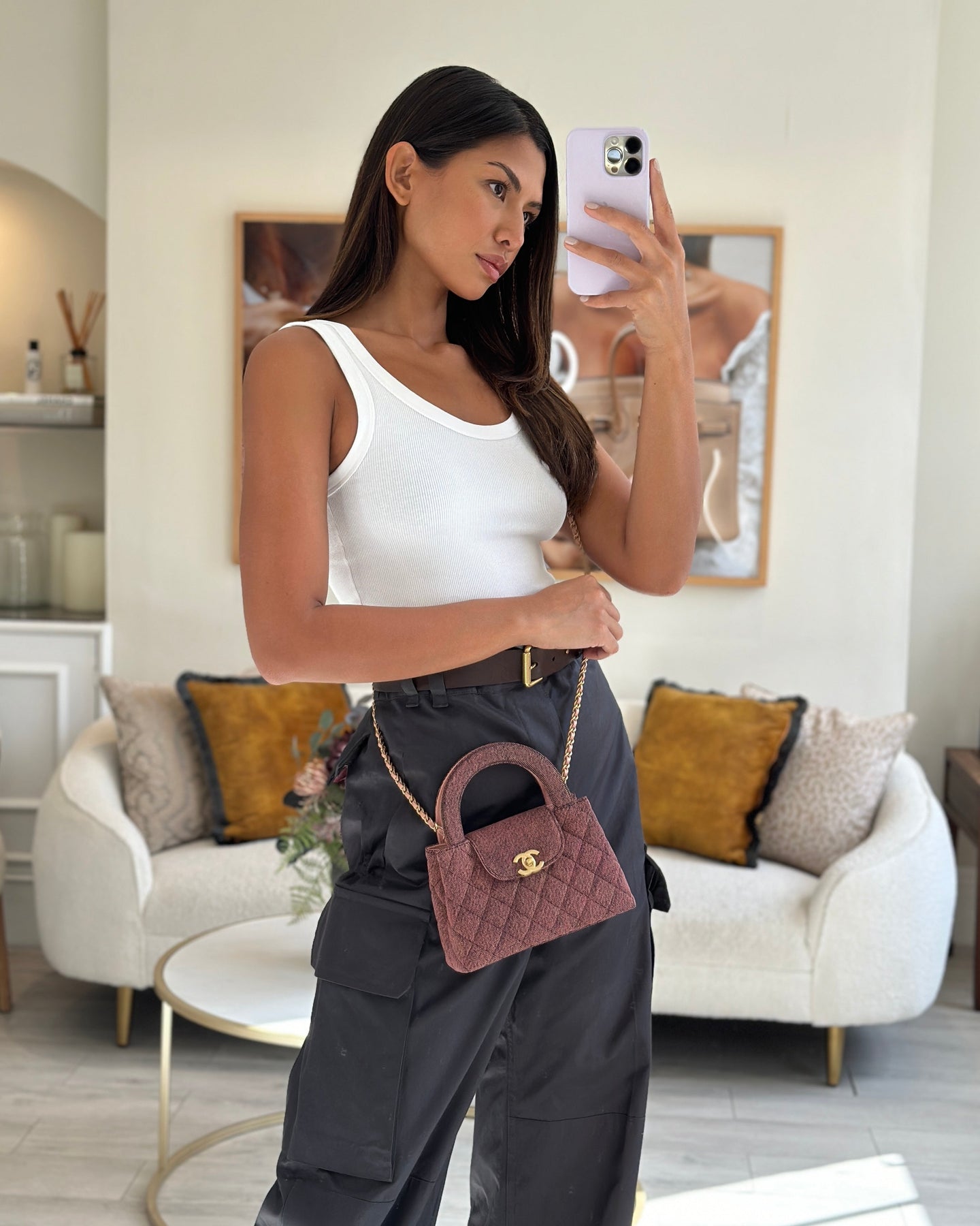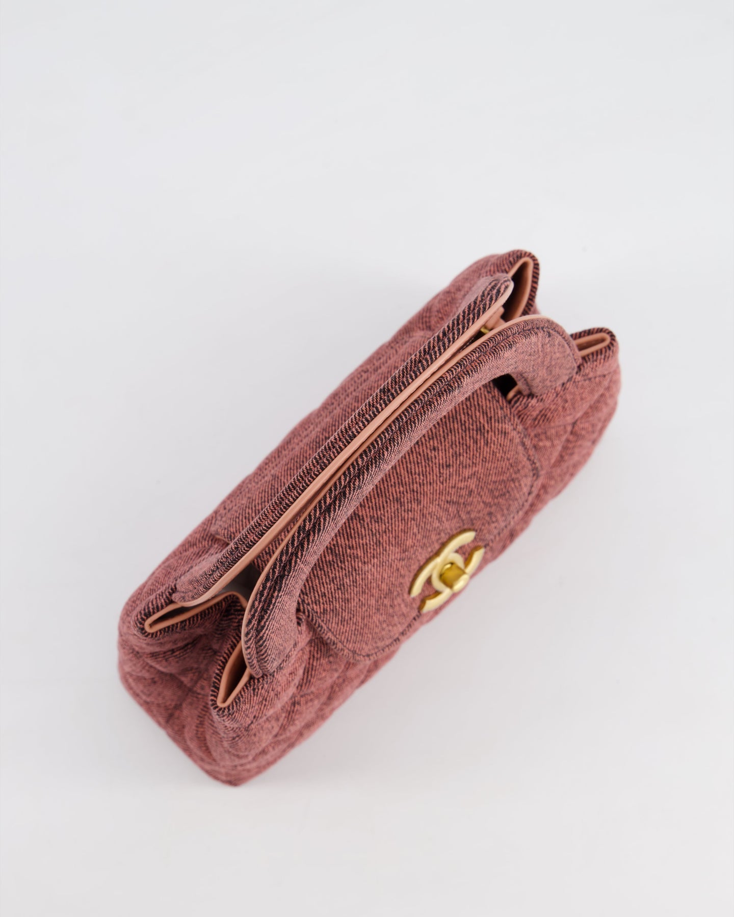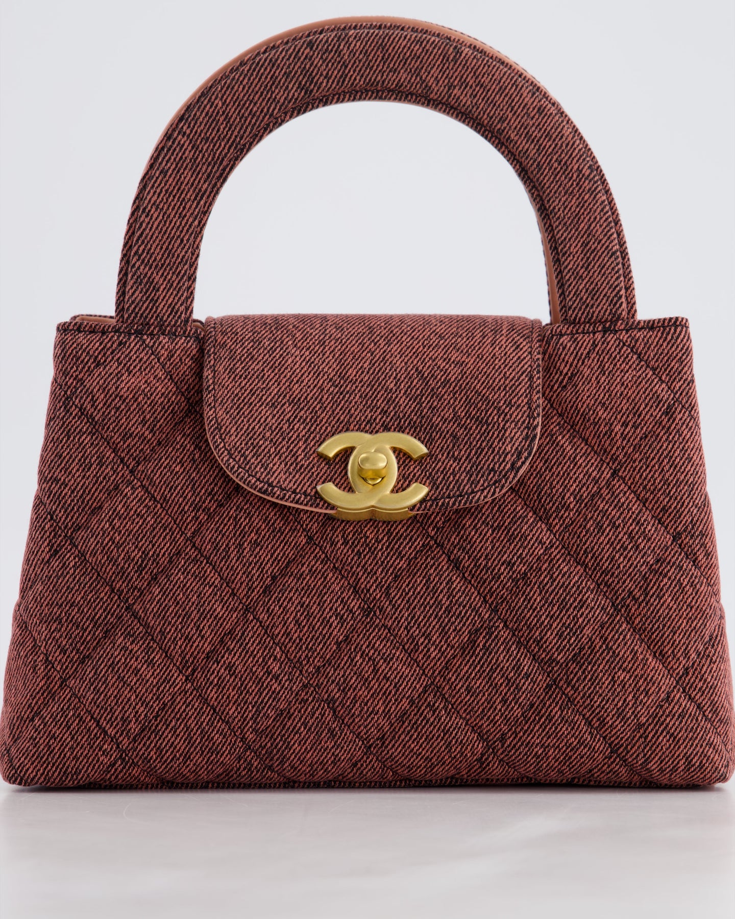 *HOT & RARE* Chanel Dark Pink Small Mini Kelly Shopping Bag in Denim with Brushed Gold Hardware