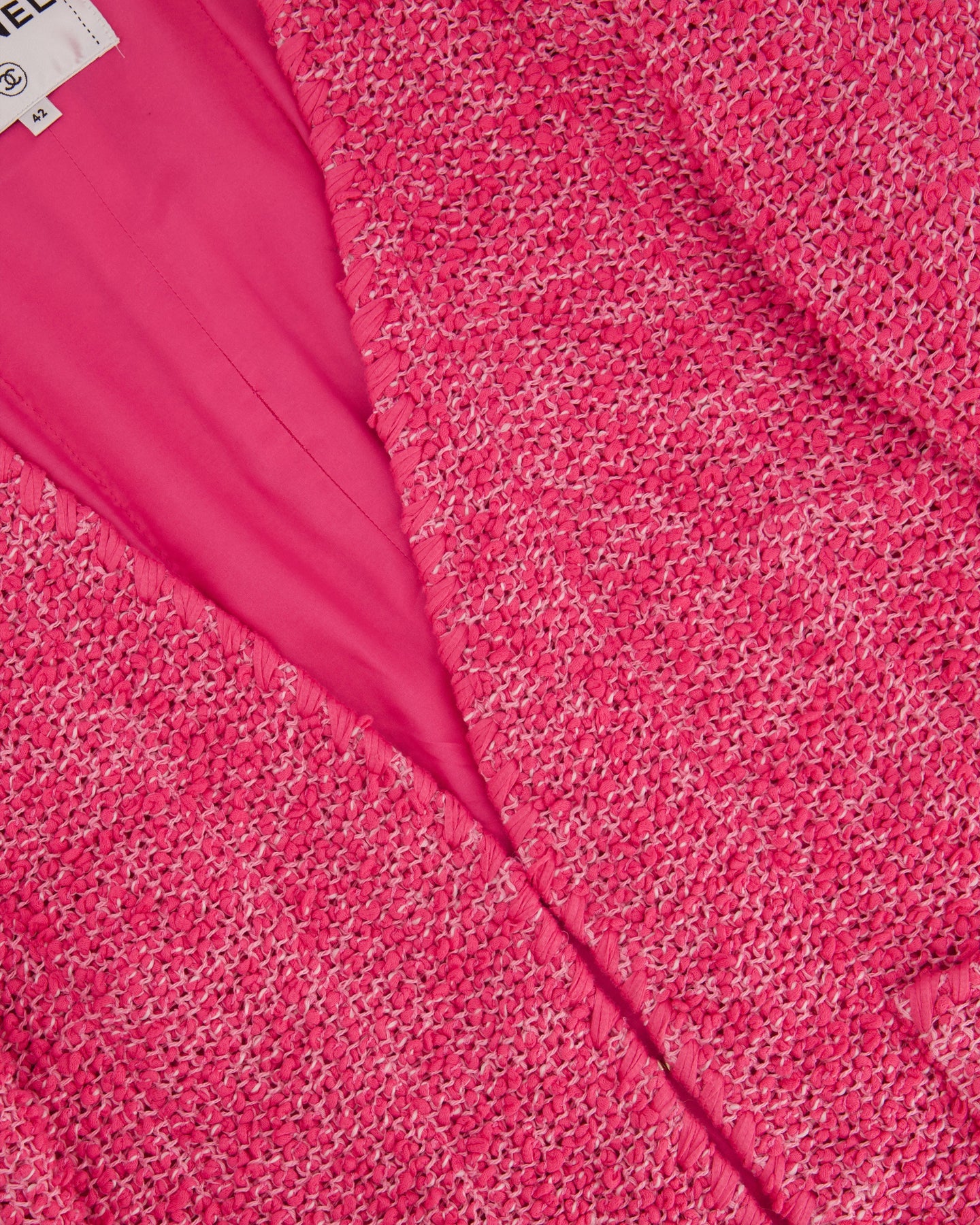 *HOT* Chanel 21C Pink Tweed Jacket and Skirt Set with CC Logo Buttons Size FR 42 (UK 14)