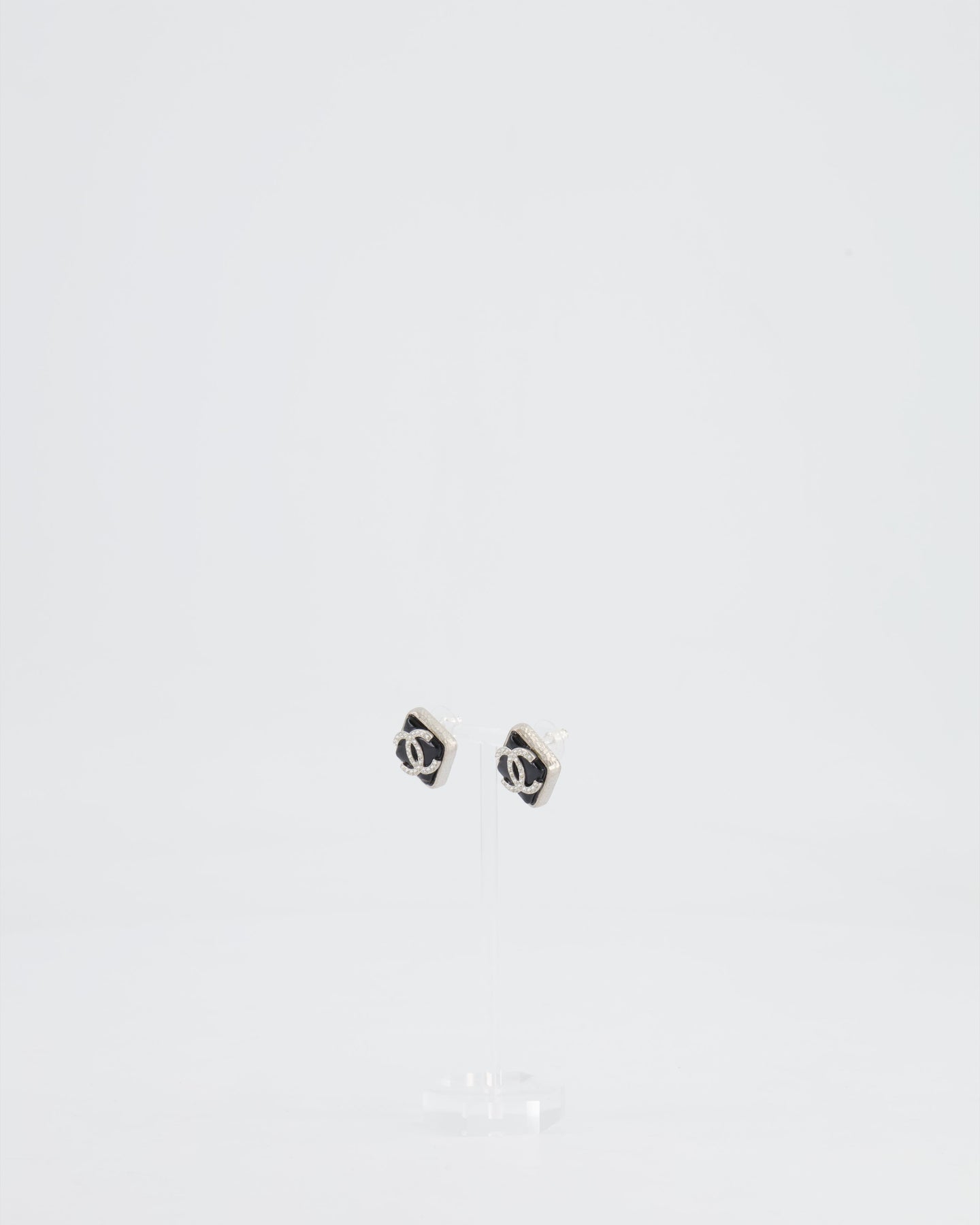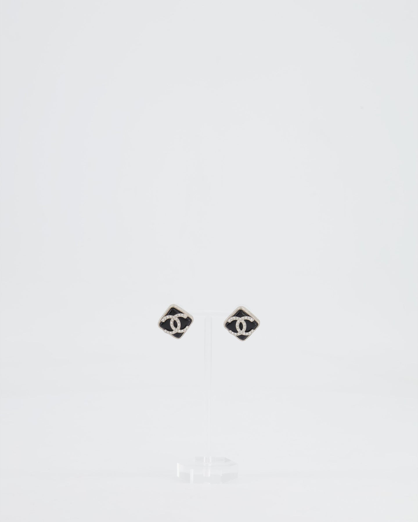 Chanel Black, Crystal Embellished Diamond-Shaped CC Earrings