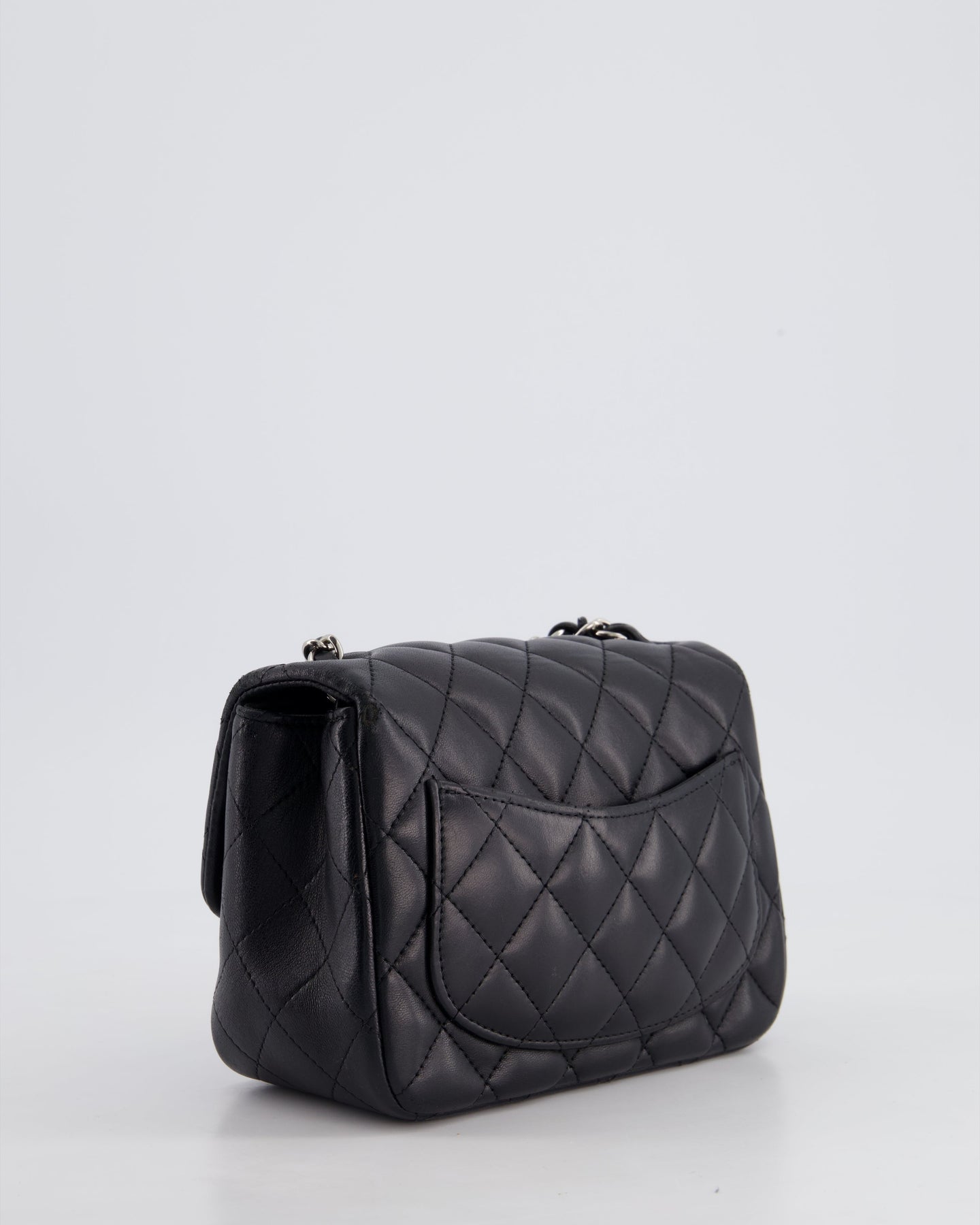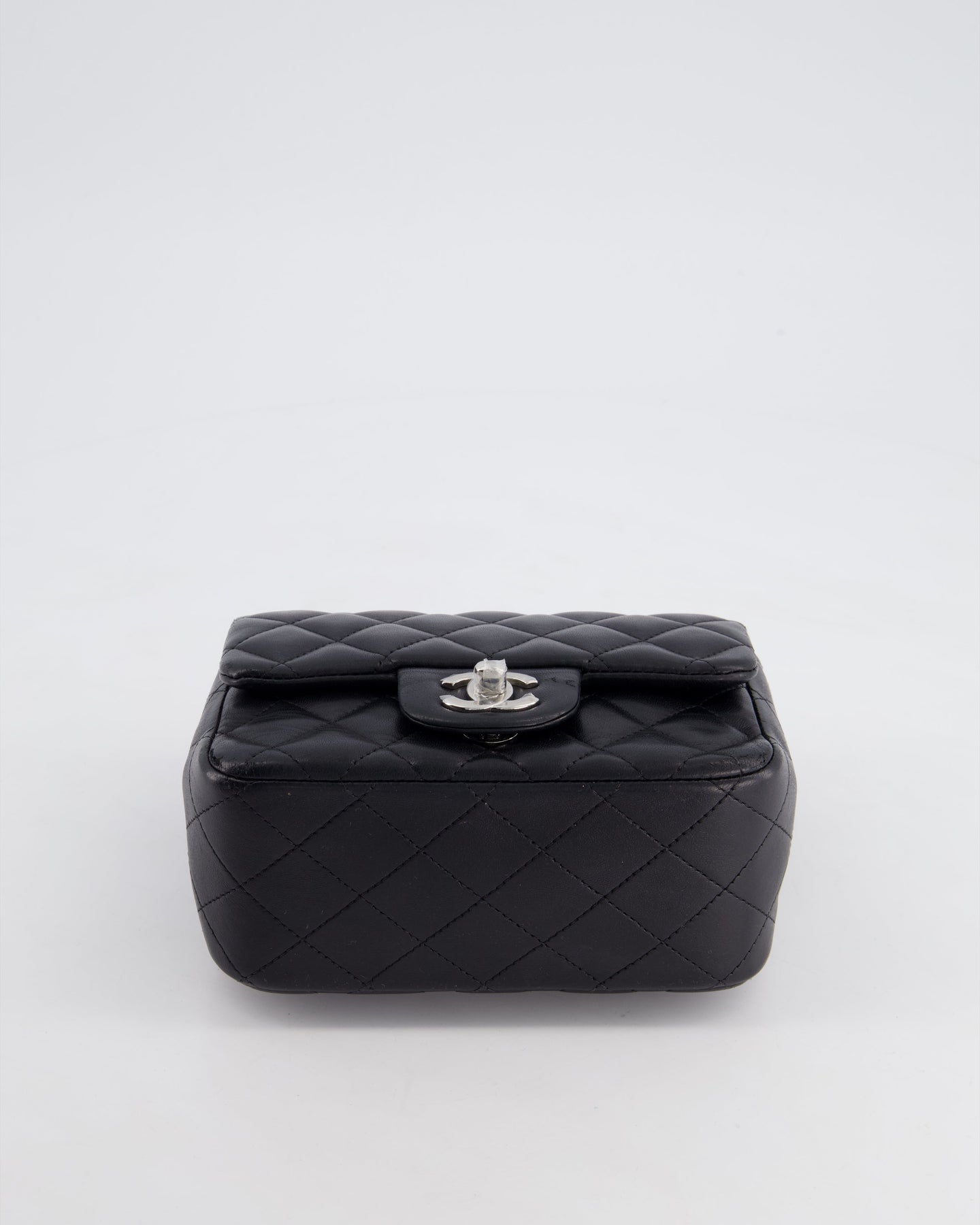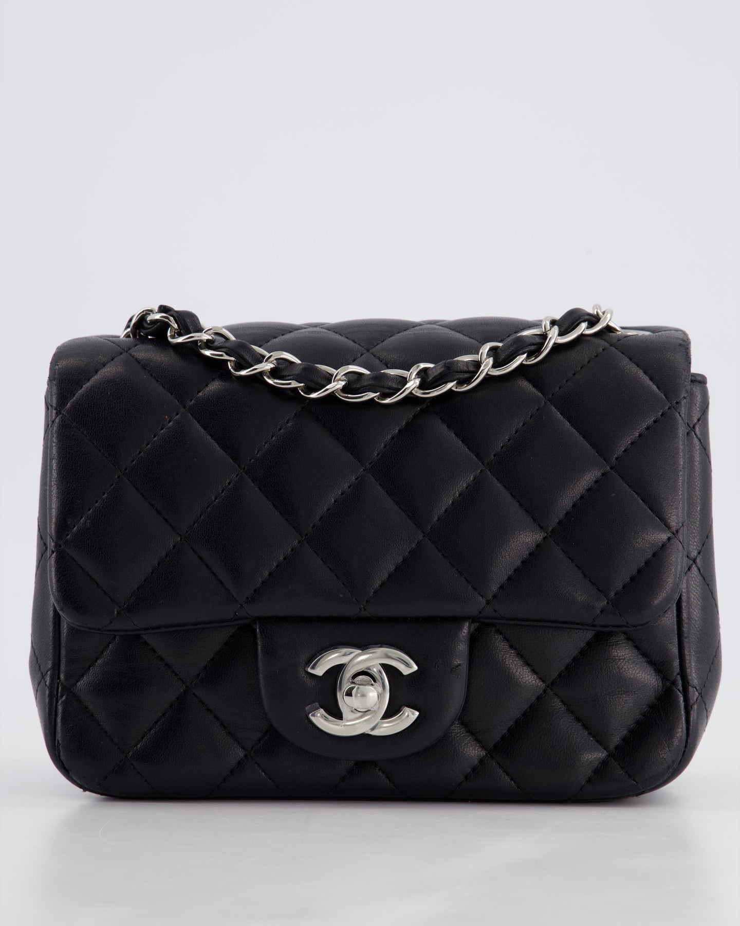 *HOT* Chanel Black Mini Square Flap Bag in Lambskin with Silver Hardware