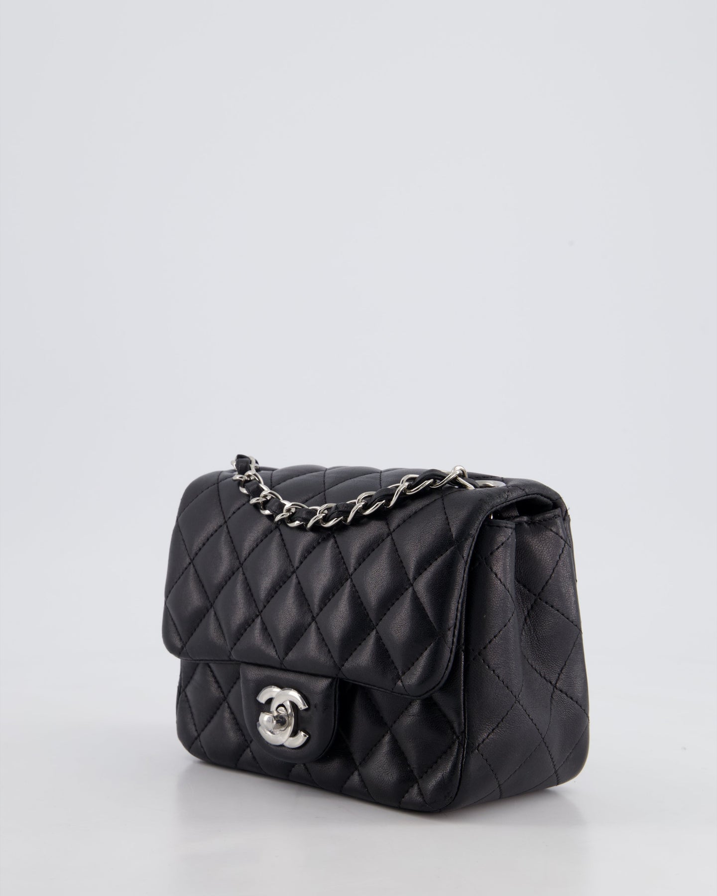 *HOT* Top Quality Chanel Black Mini Square Flap Bag in Lambskin with Silver Hardware