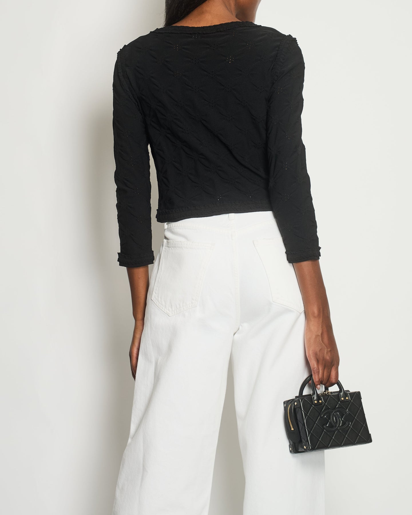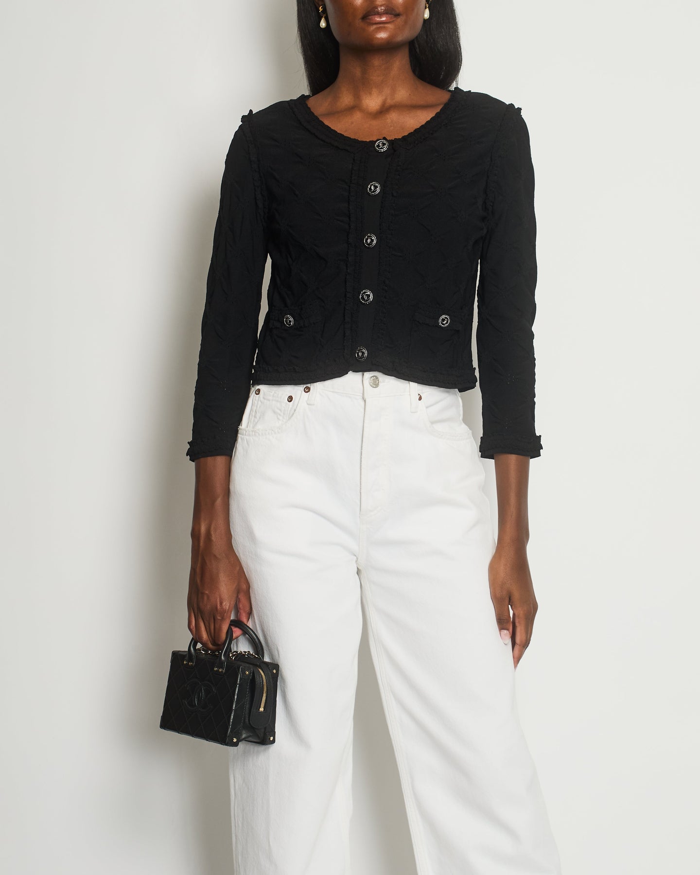 *HOT* Chanel Black Stretch-Jersey igan with Ruthenium CC Buttons Detail Size FR 40 (UK 12)