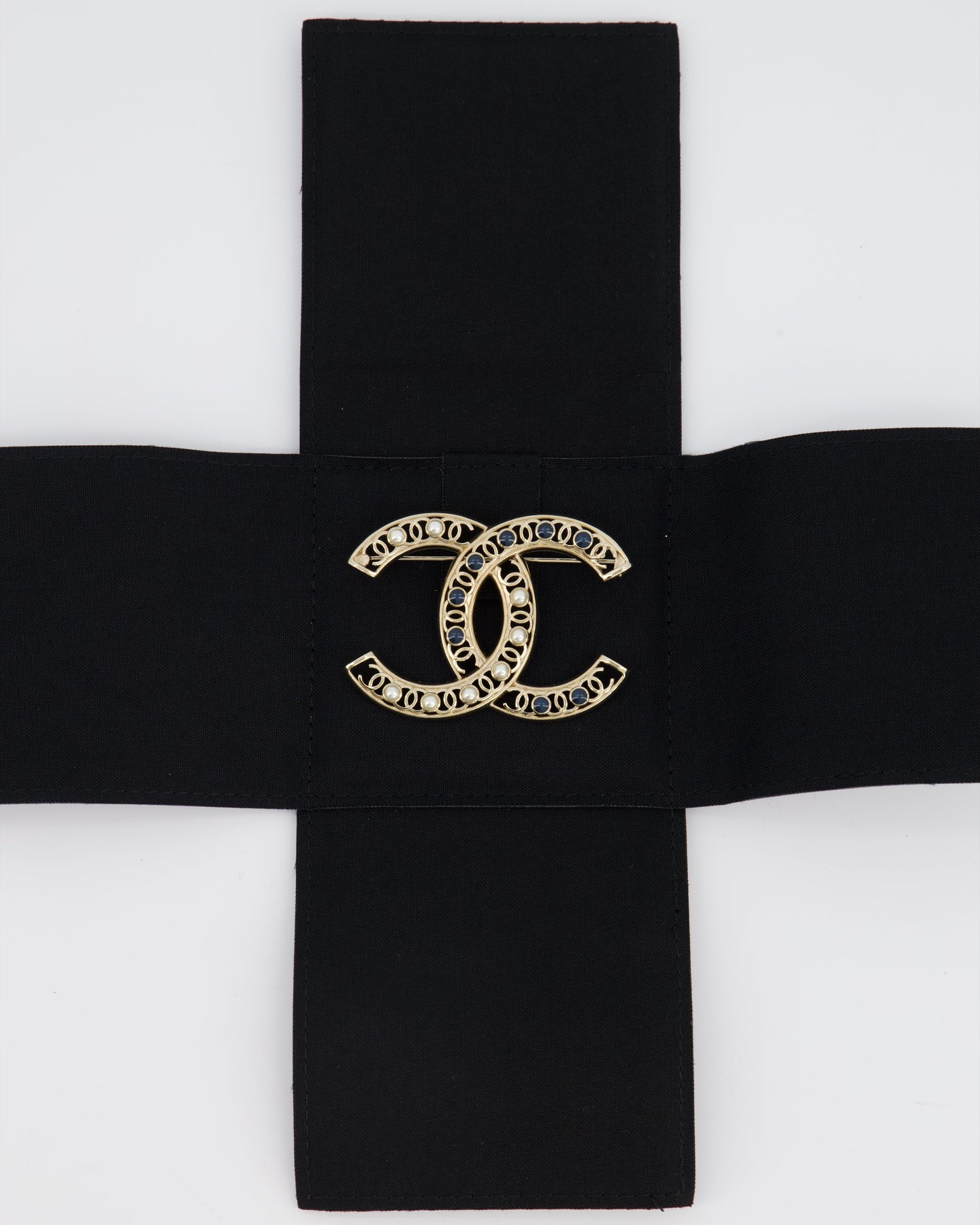 *HOT* Chanel Large CC Pearls and Blue Crystals Brooch with Champagne Gold Hardware