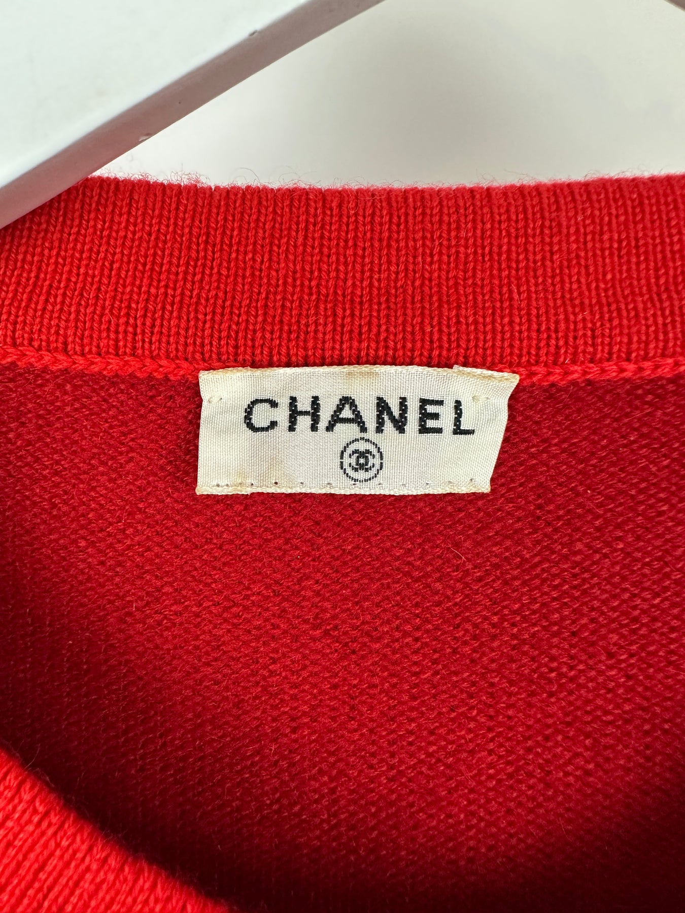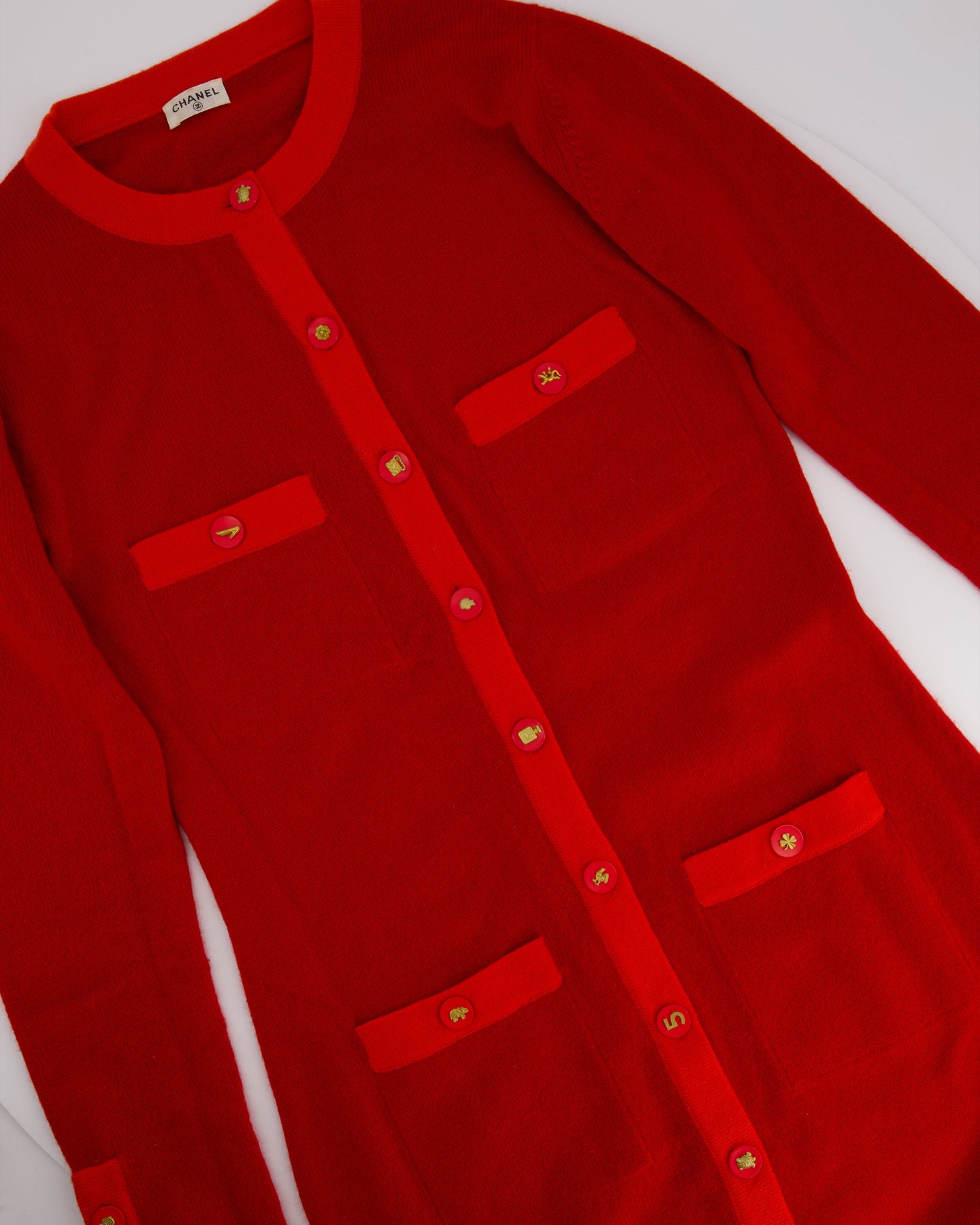 Chanel Red Long Sleeve Knit Mini Dress with Multi Icon Logo Button Details FR 38 (UK 10)