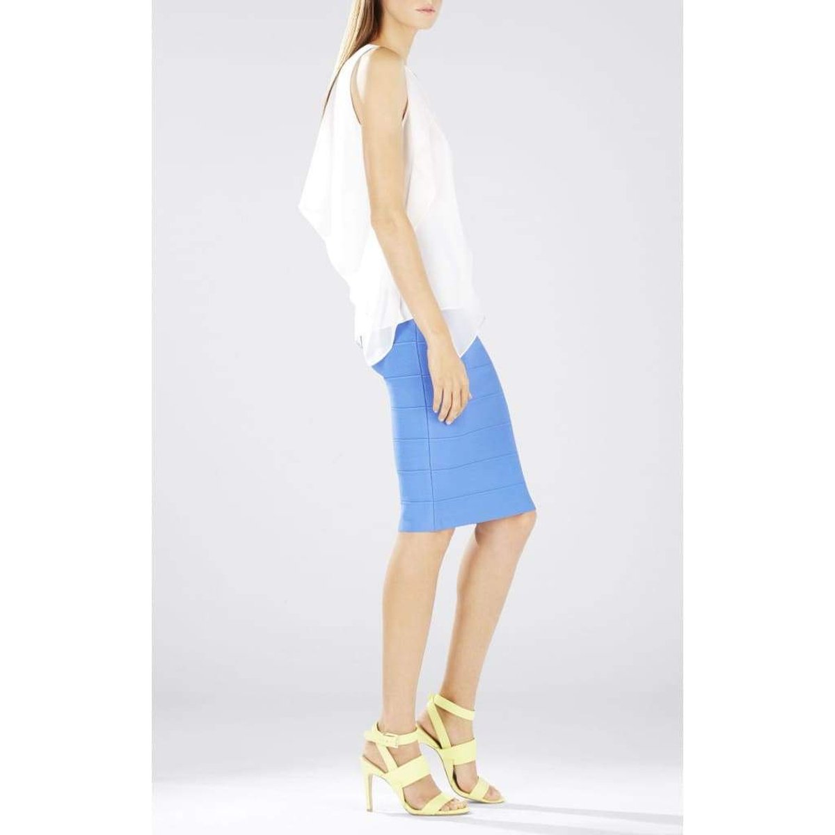 Flutter details lend a feminine flourish to a traditionally corporate silhouette.