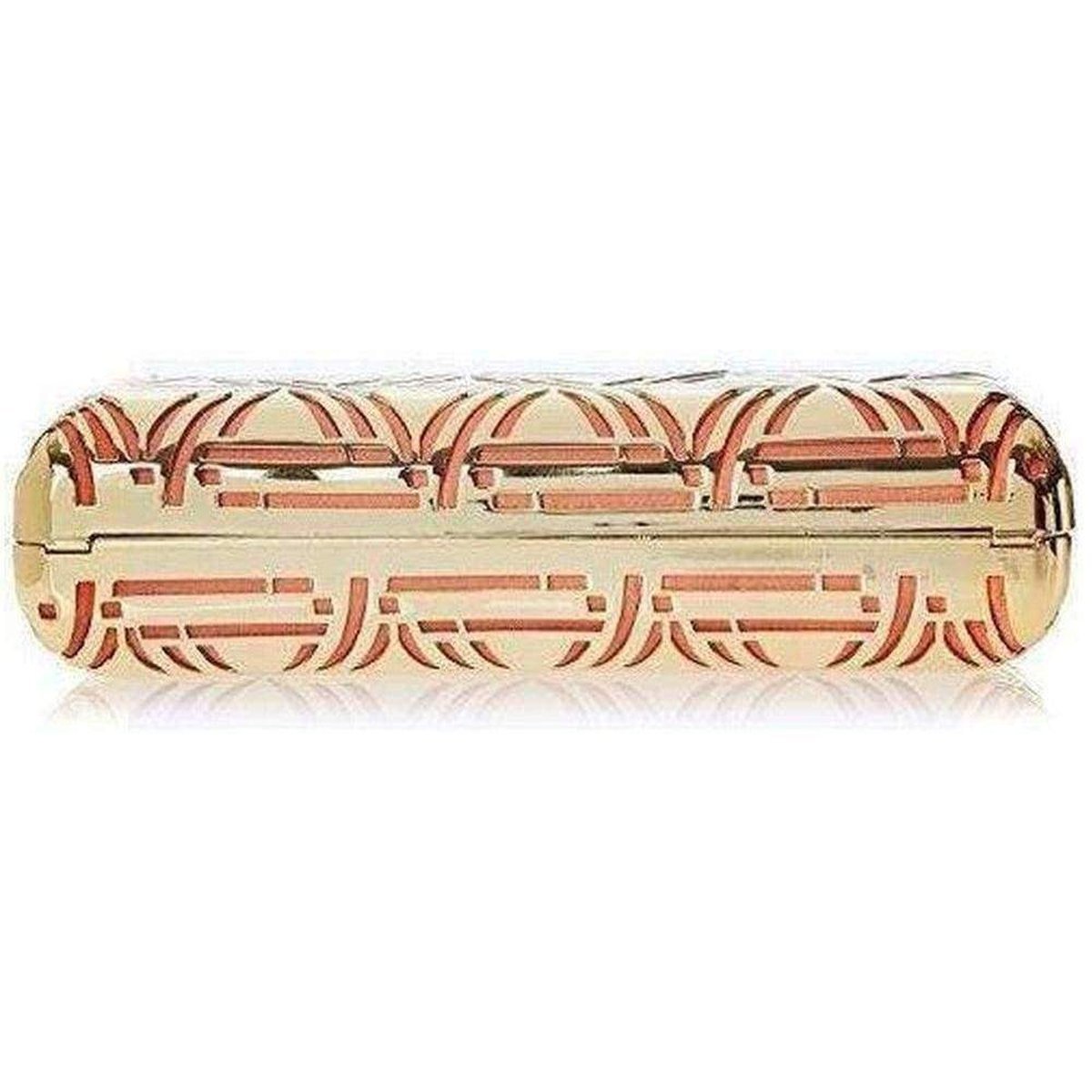 Material: Zinc alloy. Trim: Acetate. Lining: Polyester faille. Imported.