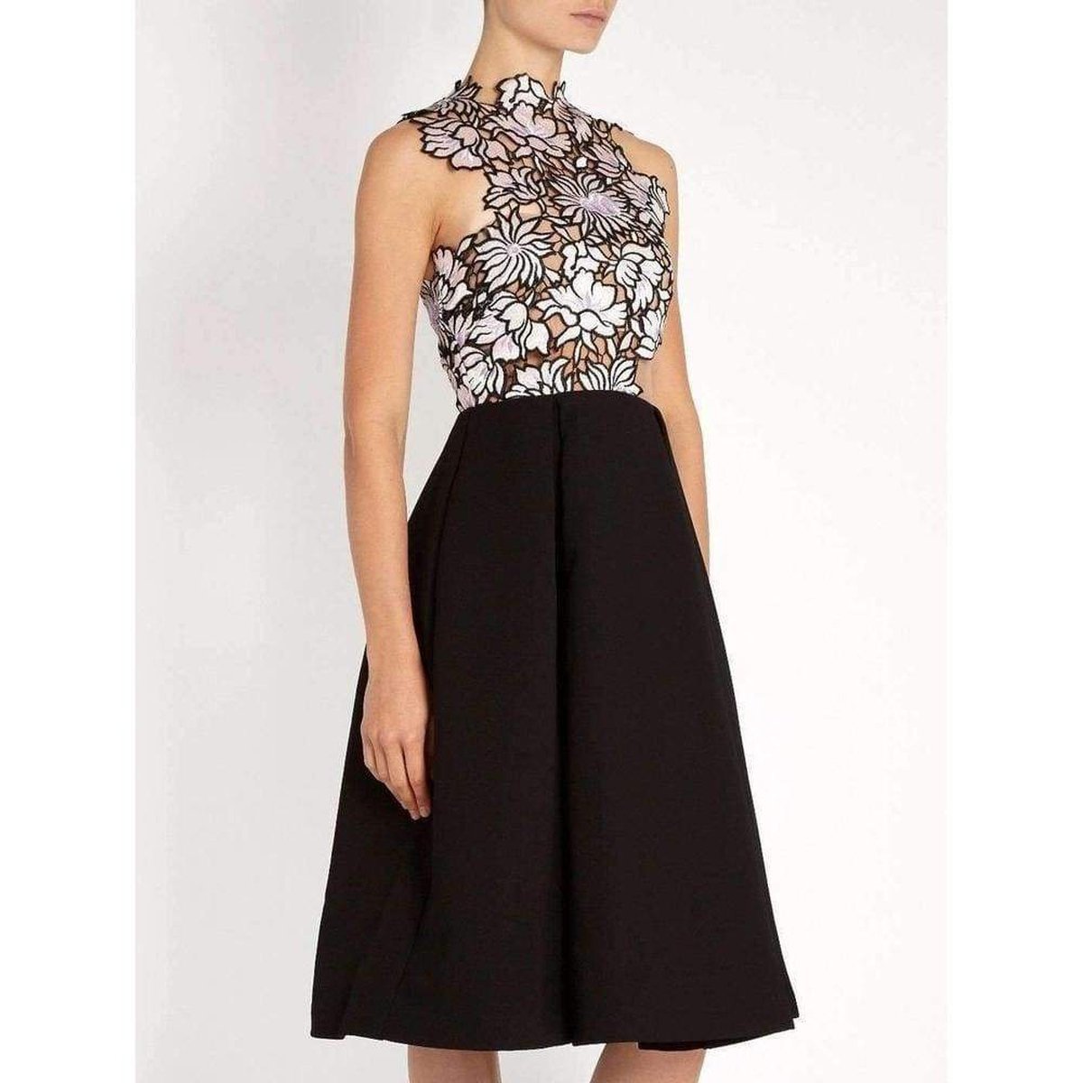 Black box-pleated double-crepe A-line skirt, side-seam pockets