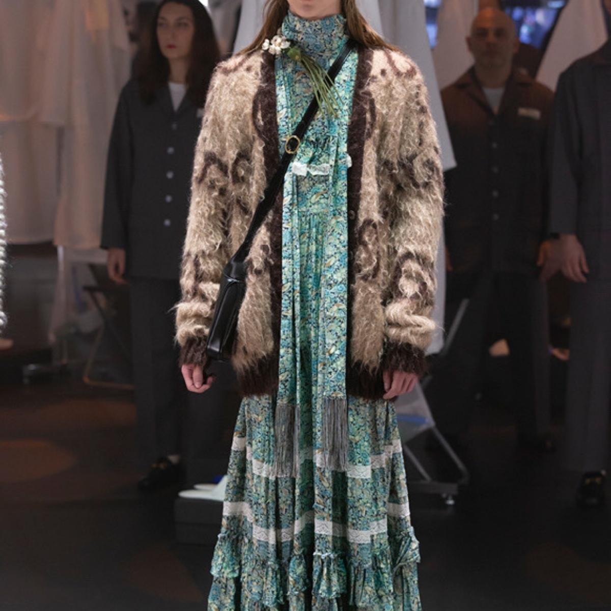 Gucci's brooch is formed in the shape of lily of the valley
