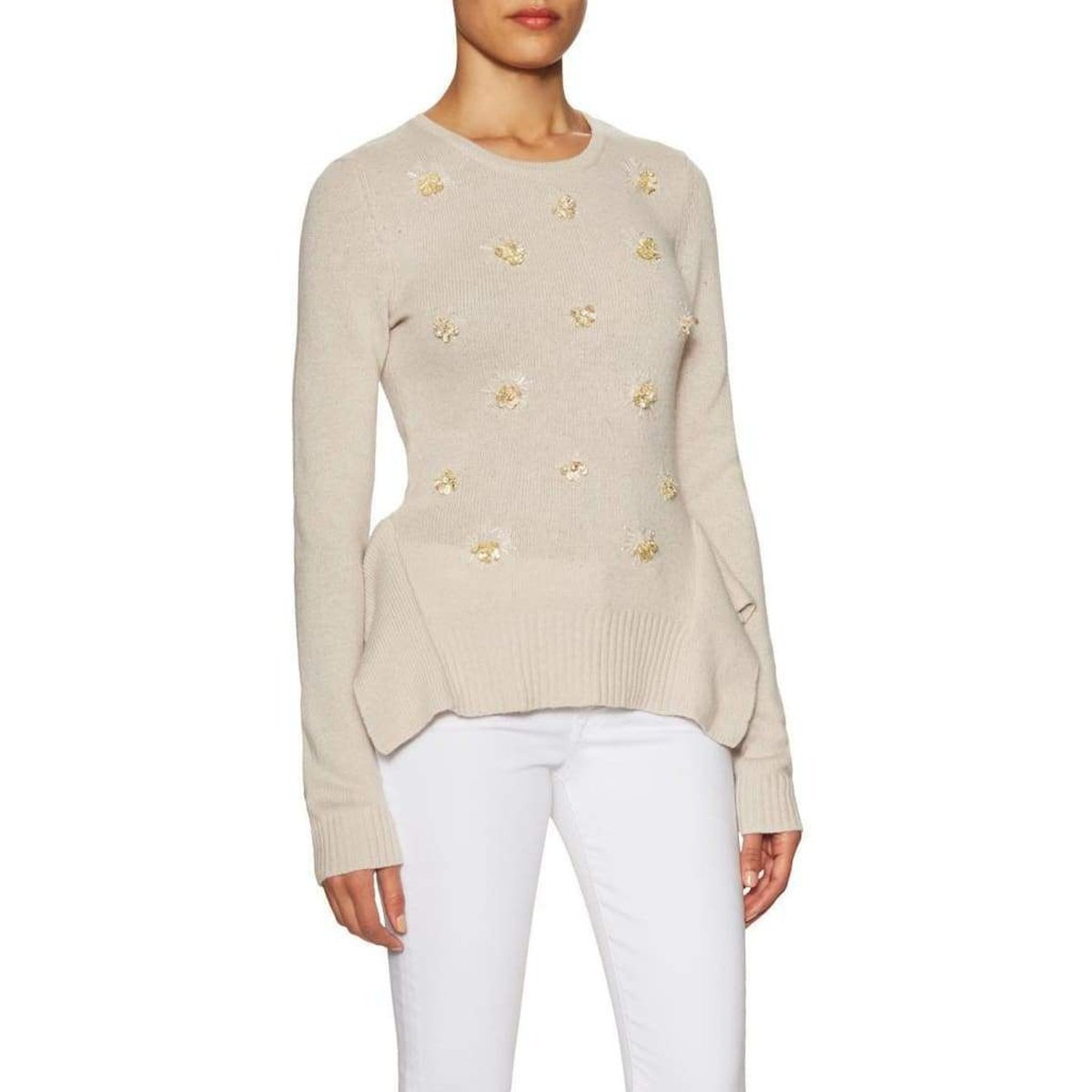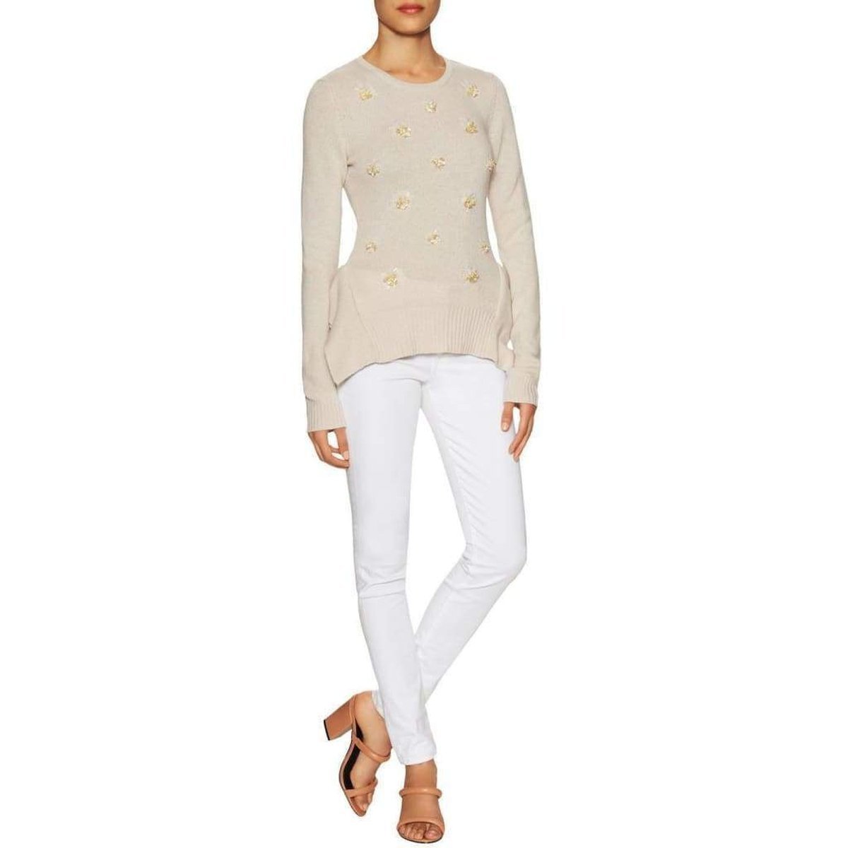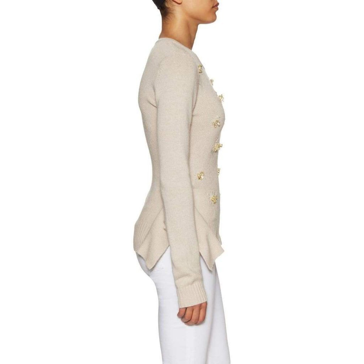 Peplum-embellished side seams with slits.