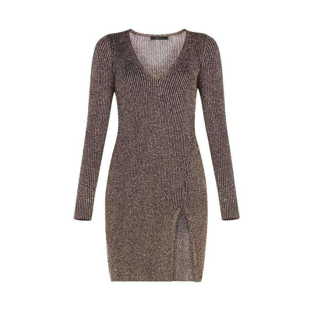 This skin-skimming tunic dress is intricately detailed with flourishes of metallic yarn and is cut with a plunging v-neckline and a thigh-high slit.Pullover