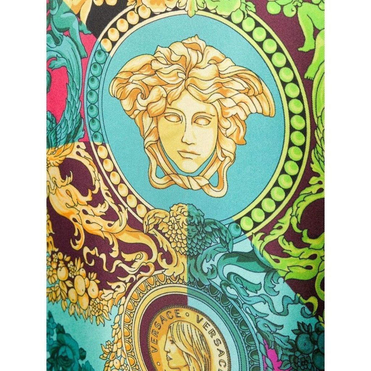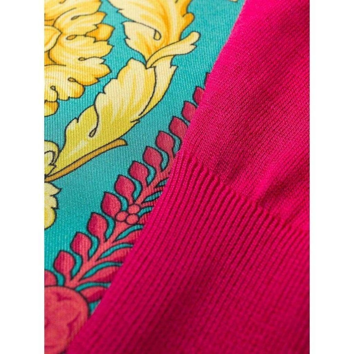This pink cotton and silk Medusa print cardigan from Versace features a front button fastening, long sleeves, a knitted style, a v-neck and a ribbed hem and cuffs.