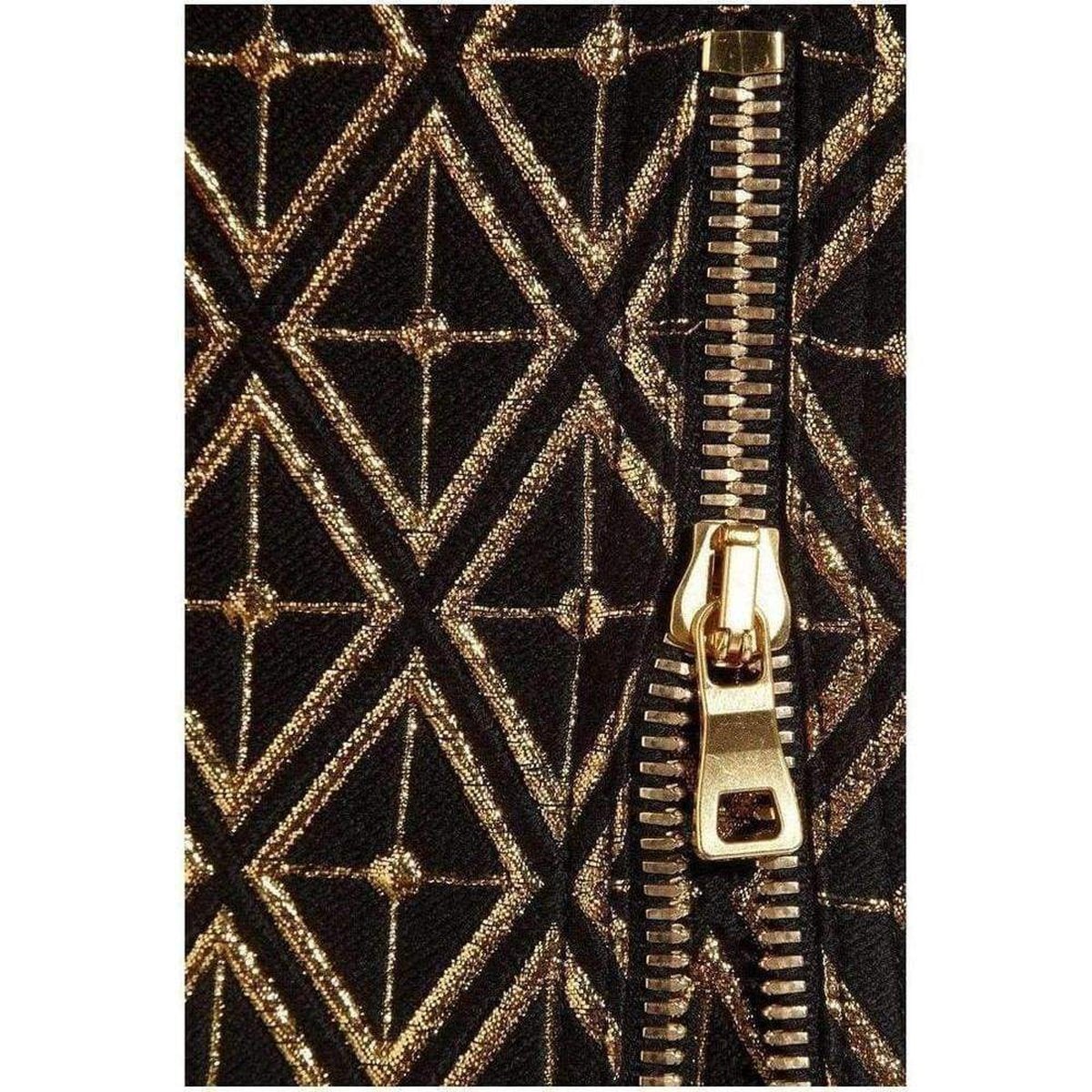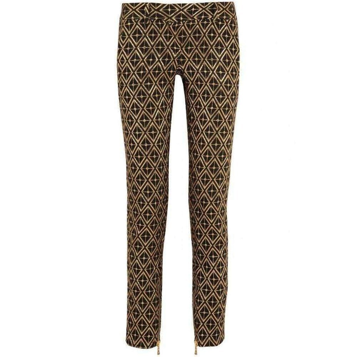 Black Metallic Jacquard Pants Black and gold jacquardZipped side slit pockets