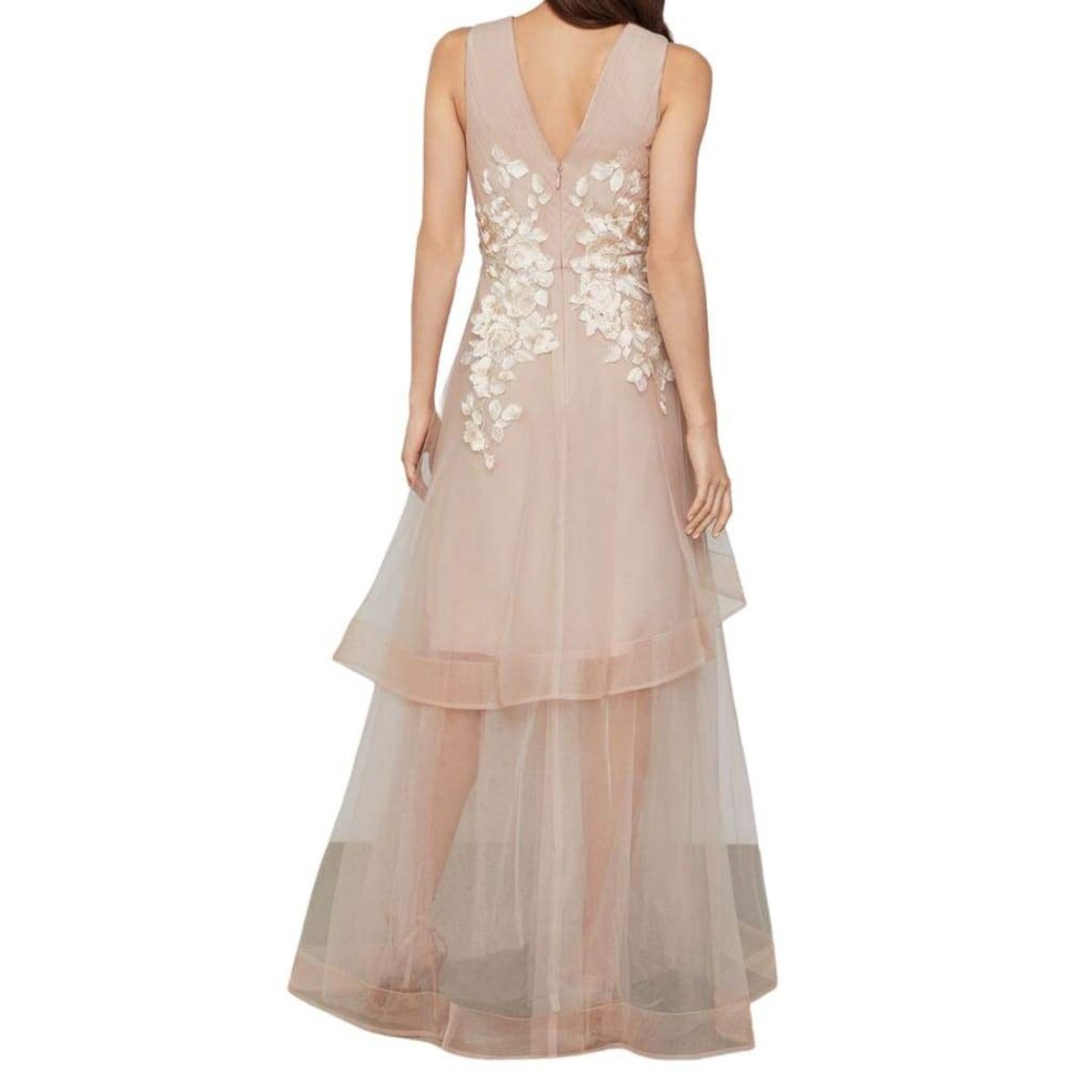 Fabric Self: 100% polyester tulle; Contrast: 85% rayon, 12% nylon, 3% metallic lace applique; Lining: 88% polyester, 12% spandex