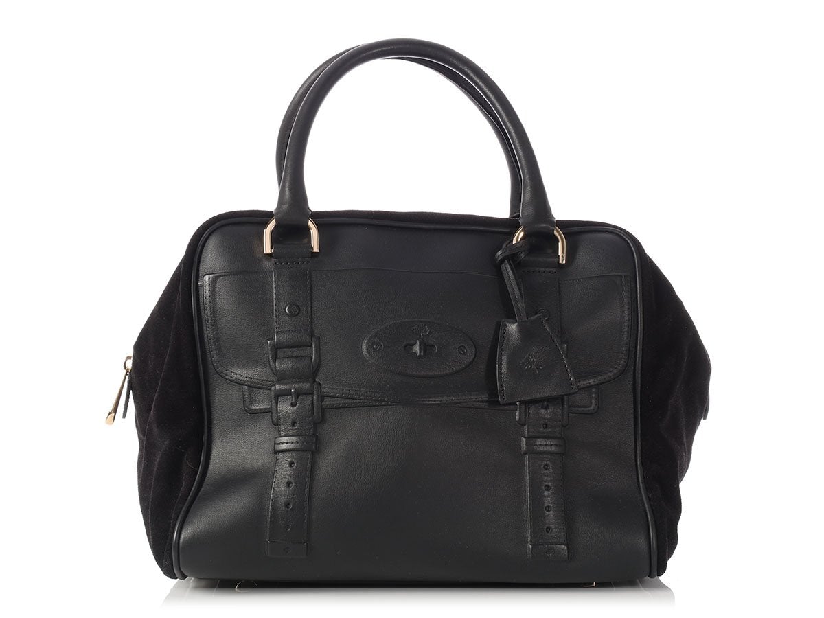 At first glance you might mistake Mulberry’s Black Maisie Clipper Satchel for an Alexa—with its large front flap and signature twin straps—but a quick double take will reveal the Alexa details are merely an embossed illusion! Crafted from a combination of black heavy suede on the sides and Smooth Touch leather on the flapless/strapless front and back, this squarish bag has gold hardware, one zipped pocket on the back, and rounded handles with a 5-inch drop. Unzip the top and you’ll find black logo fabric lining with one zipped and one slide pocket inside. In very good condition with a dustbag, clochette, cards, and tag, it has light wear on the corners, a scuff on the back handle, a few scratches throughout, a small white mark on the suede on the right side, and two subtle creases on the back (maybe from storage). The embossing adds a fun element to this Mulberry, just remember not to try to twist the turnlock—it’s only a mirage!