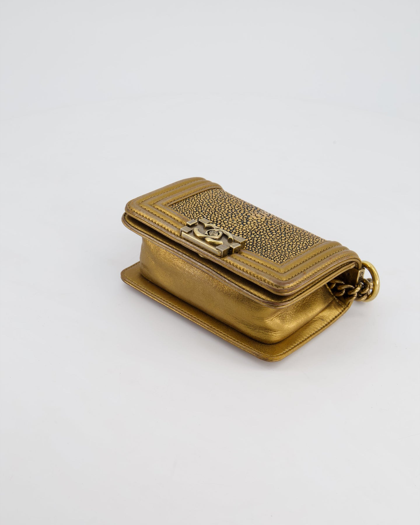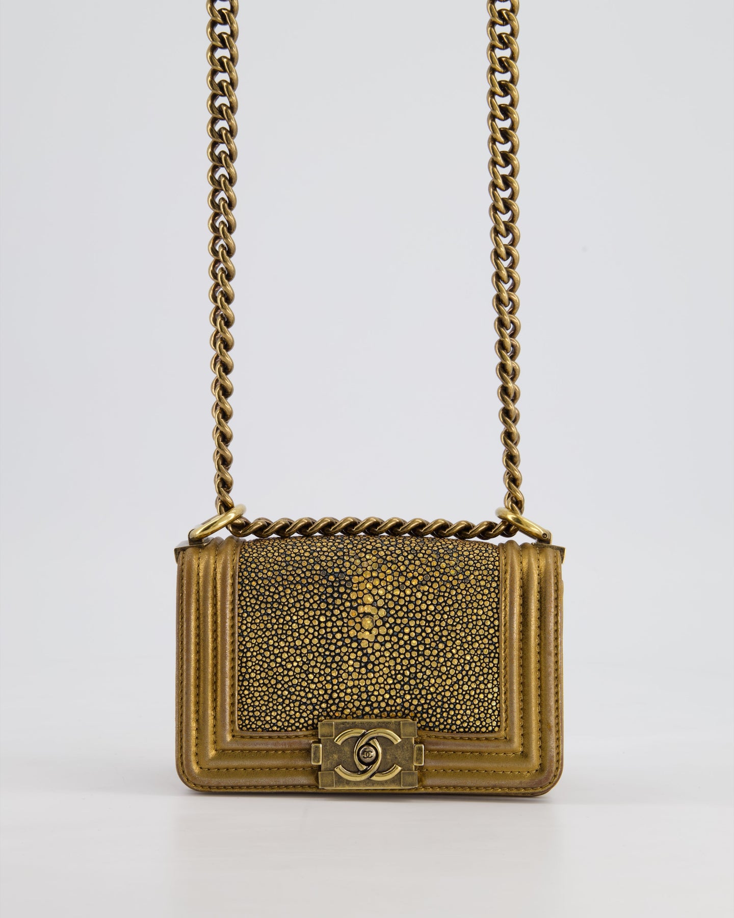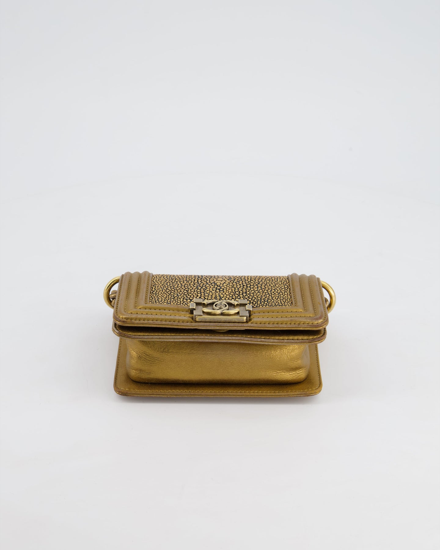 *RARE* Chanel Bronze Micro Boy Bag in Stingray & Calfskin Leather with Antique Bronze Hardware