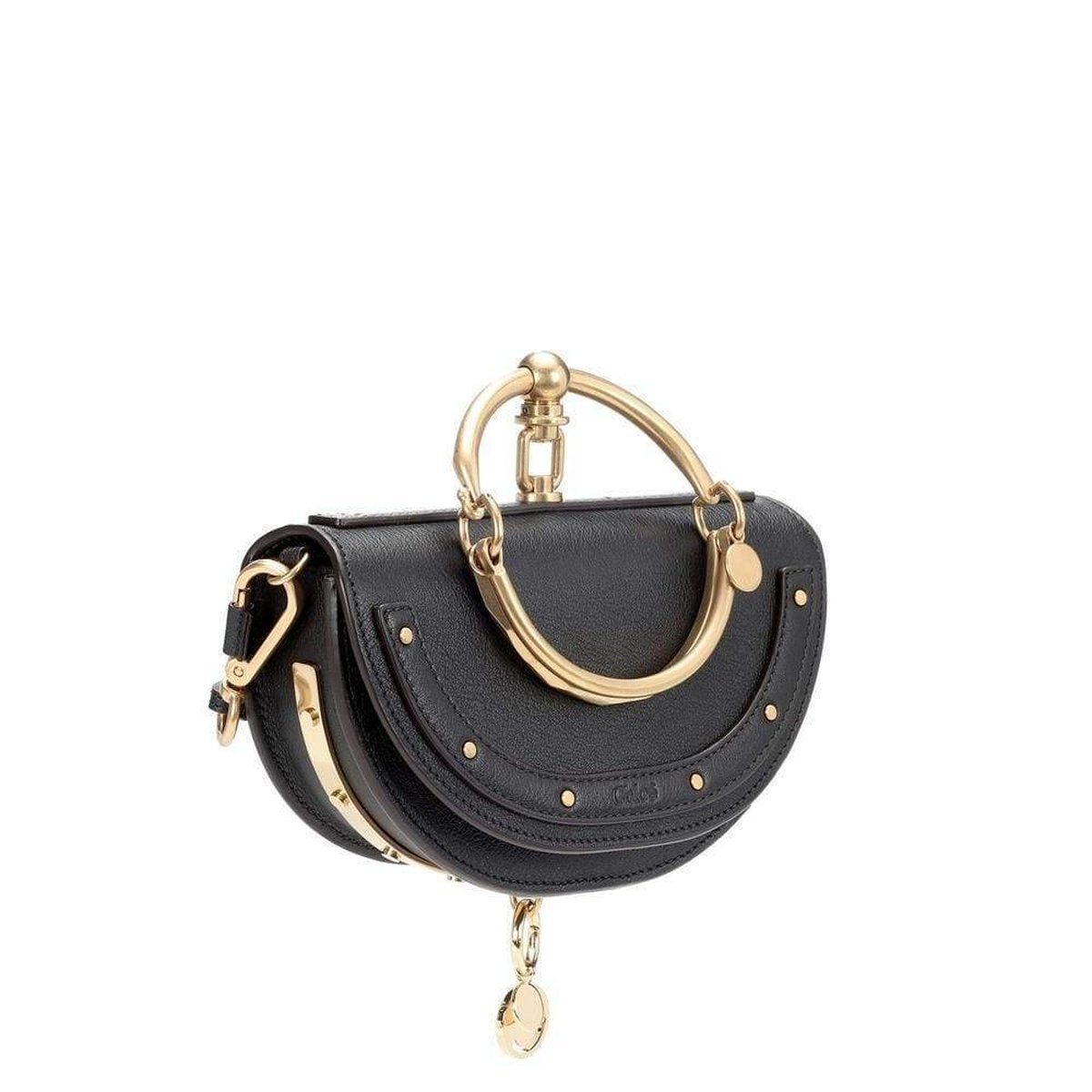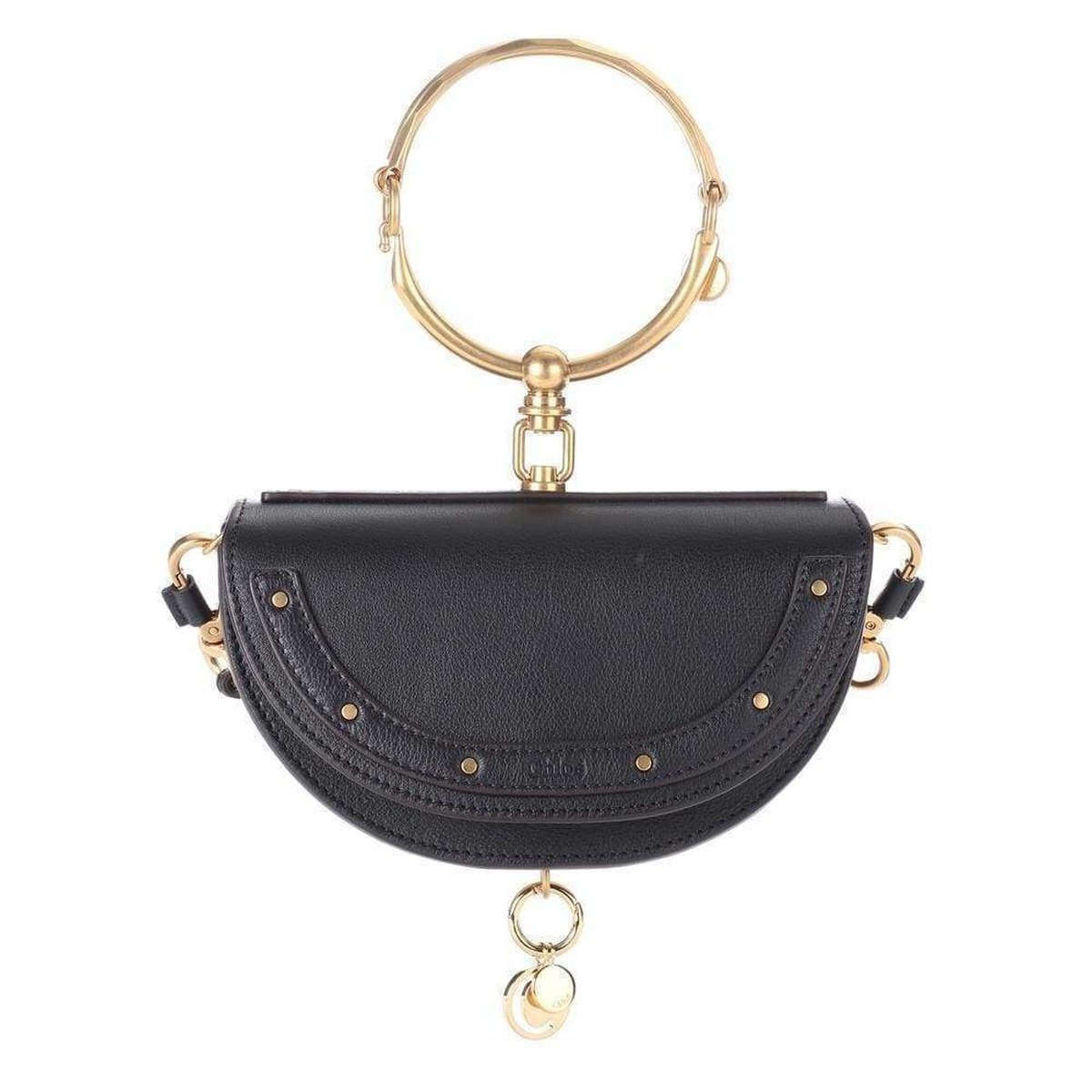 Chloé's Nile Minaudière crossbody bag has the signature charm the brand is known for. Crafted from smooth beige-hued leather and accented with golden hardware, this half-moon style features a doorknob-inspired, oversized top handle for a distinctive touch. Wear yours cross-body over a peasant top and loose trousers for bohemian flair.