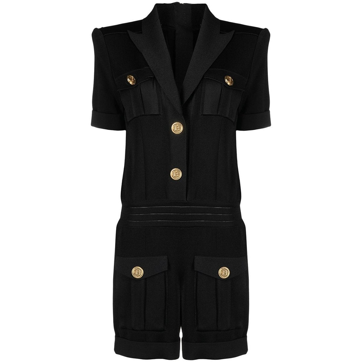 A military-inspired jumpsuit styled with peaked lapels, cuffed hems and embossed logo buttons brings a dash of utilitarian chic to your dressing.