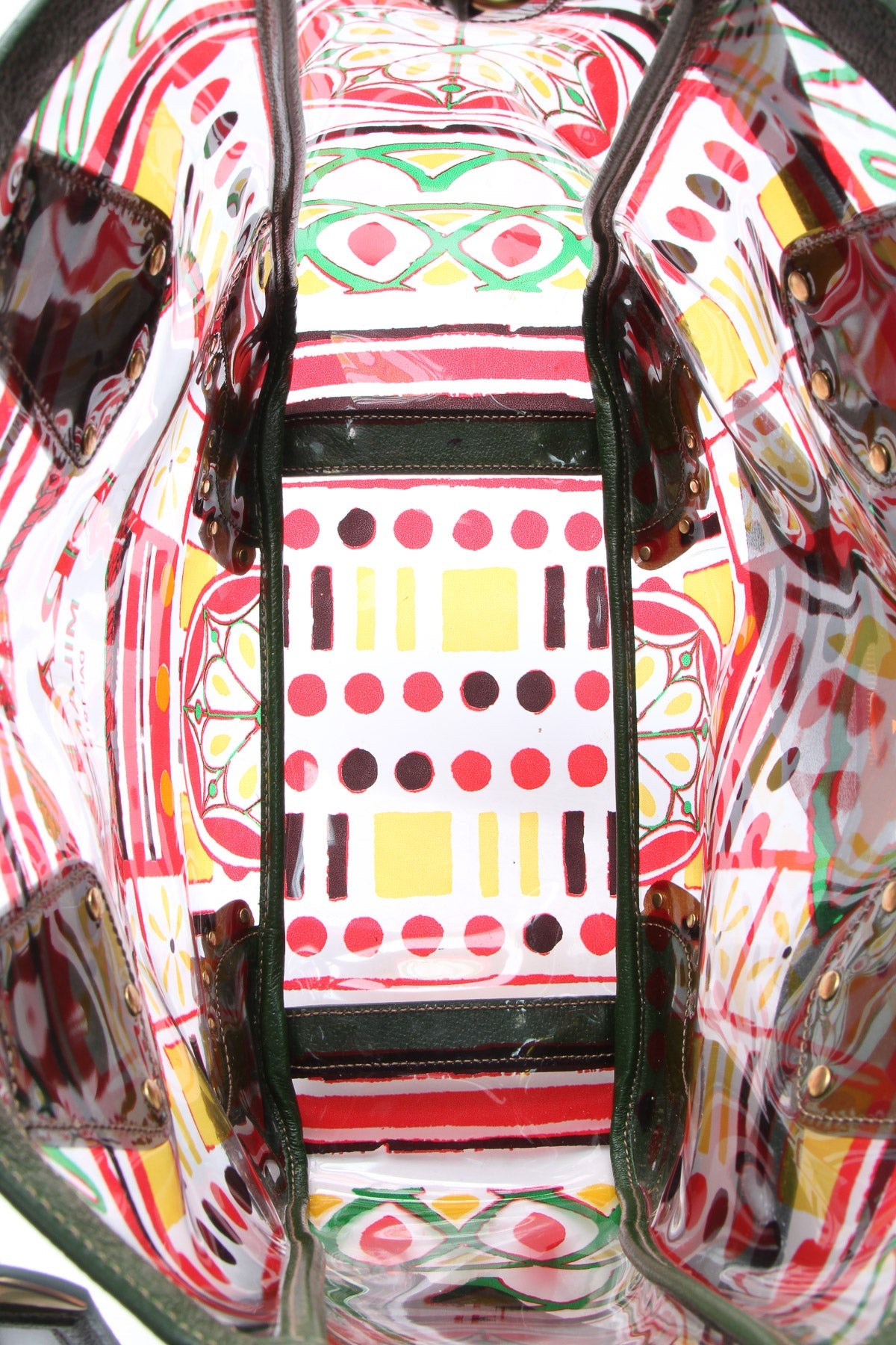 This purse is in great condition with minor creasing on the leather and minor scratches throughout the vinyl and hardware.